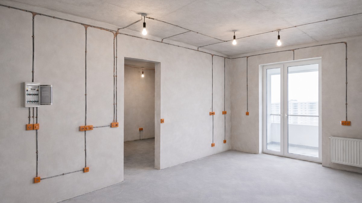 Минимальный набор электрики в предчистовой отделке включает базовую инфраструктуру, необходимую для последующего чистового монтажа: