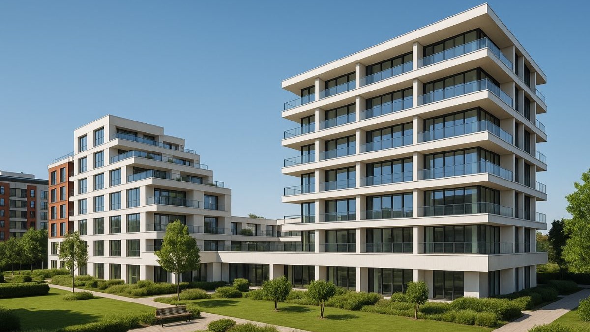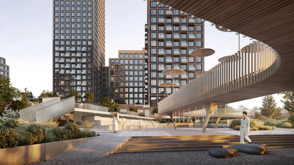 Футуристичная архитектура с панорамными фасадами, многоуровневые прогулочные пространства и зелёные дворы создают ощущение, что это не просто дом, а город внутри города. Здесь акцент на современные технологии, экологию и приватность.