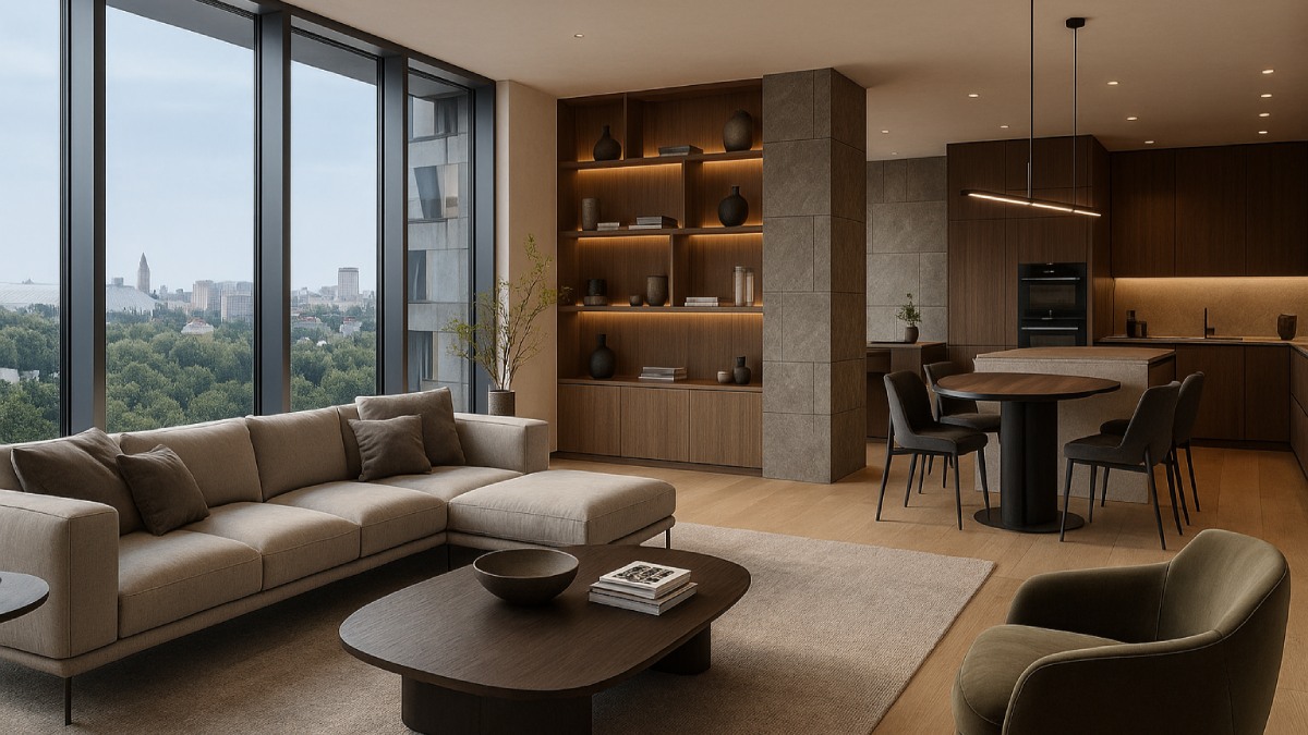 Представьте себе дом, который формирует образ жизни. Где утро начинается в просторной гостиной с панорамным видом на город, днём можно спуститься в собственный фитнес или прогуляться по двору-парку с водоёмом, а вечером встретиться с друзьями в лаунж-зоне или в ресторане прямо на первом этаже.