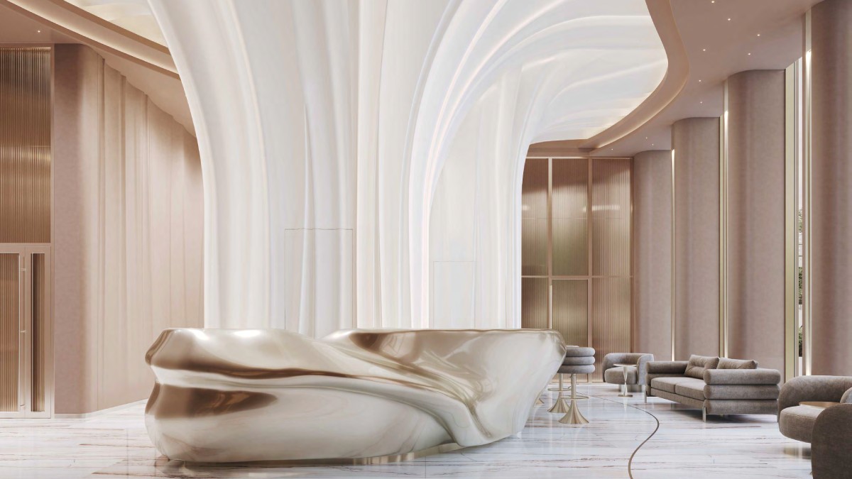 МУЗА – это два корпуса с каскадной высотностью от 6 до 20 этажей и клубным форматом на 309 резиденций. Такой масштаб создает камерную атмосферу, сохраняет приватность и дает ощущение дома, а не большого безличного комплекса. При этом проект не жертвует архитектурной выразительностью. Его силуэт построен на ритме, пластике и мягкой бионике форм, благодаря чему фасады выглядят живыми и по-разному раскрываются в течение дня – в утреннем свете, в дневной графике теней и в вечернем сиянии.