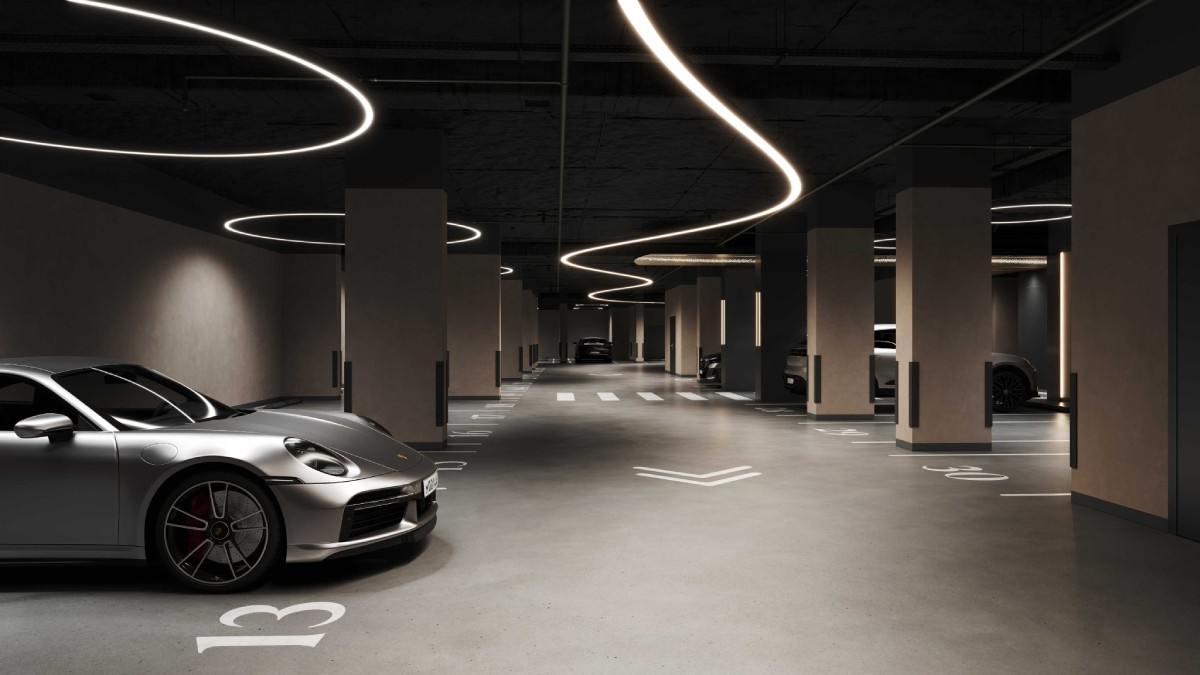 Для аудитории премиального жилья важно, чтобы высокий стандарт не заканчивался у входной группы. В МУЗЕ этот принцип выдержан и на уровне подземной инфраструктуры. В проекте предусмотрен подземный паркинг на 149 машино-мест, включая увеличенные форматы для люксовых автомобилей, места с возможностью установки зарядных станций, автомойку, зону подкачки колес и выделенную зону разгрузки. На подземном этаже также размещены келлеры и велохаб. Такой подход особенно ценен для покупателей, которые обращают внимание не только на образ дома, но и на удобство ежедневной логистики.