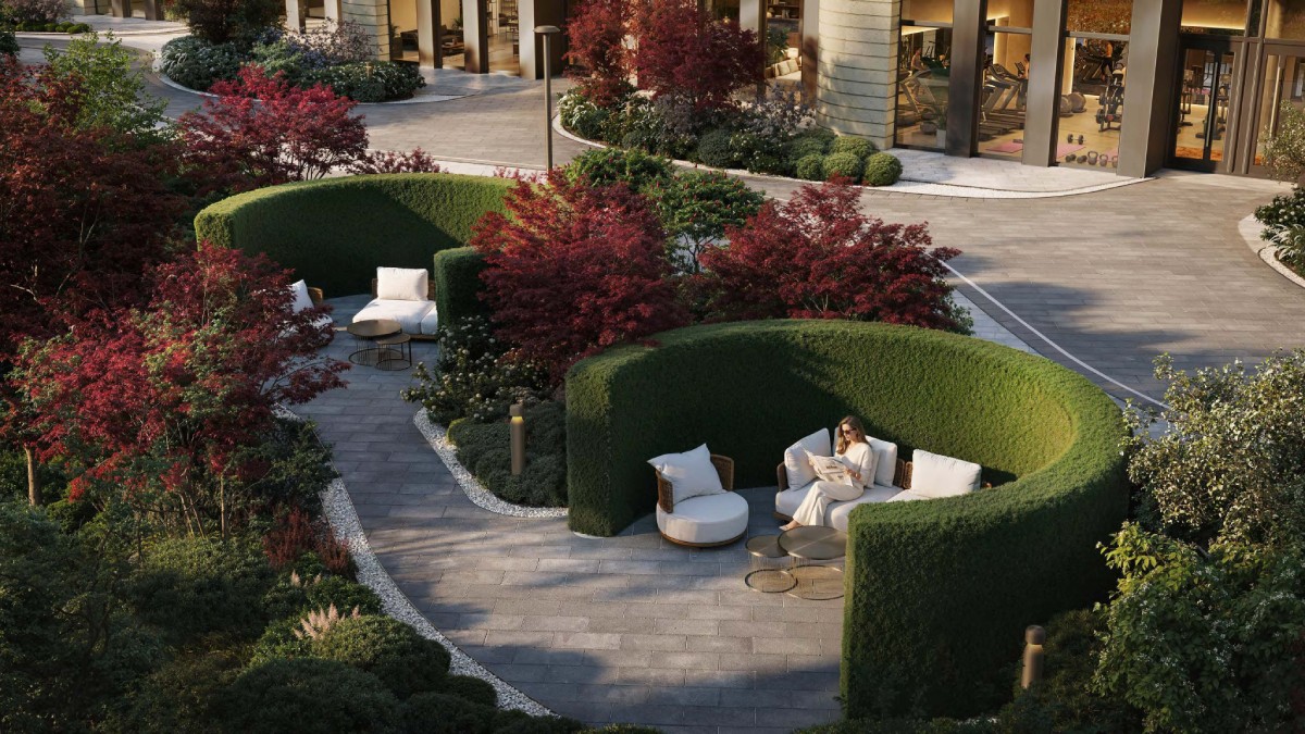 Во многих проектах двор остается обязательным элементом, но редко становится самостоятельной ценностью. В МУЗЕ он решен как полноценная ландшафтная композиция, в которой природа, архитектура и искусство соединяются в единую среду. Концепция многоуровневого сада со всесезонным озеленением формирует ощущение оазиса, скрытого от городского шума. И речь здесь не о декоративной подаче, а о пространстве с продуманными сценариями для отдыха, общения и восстановления.