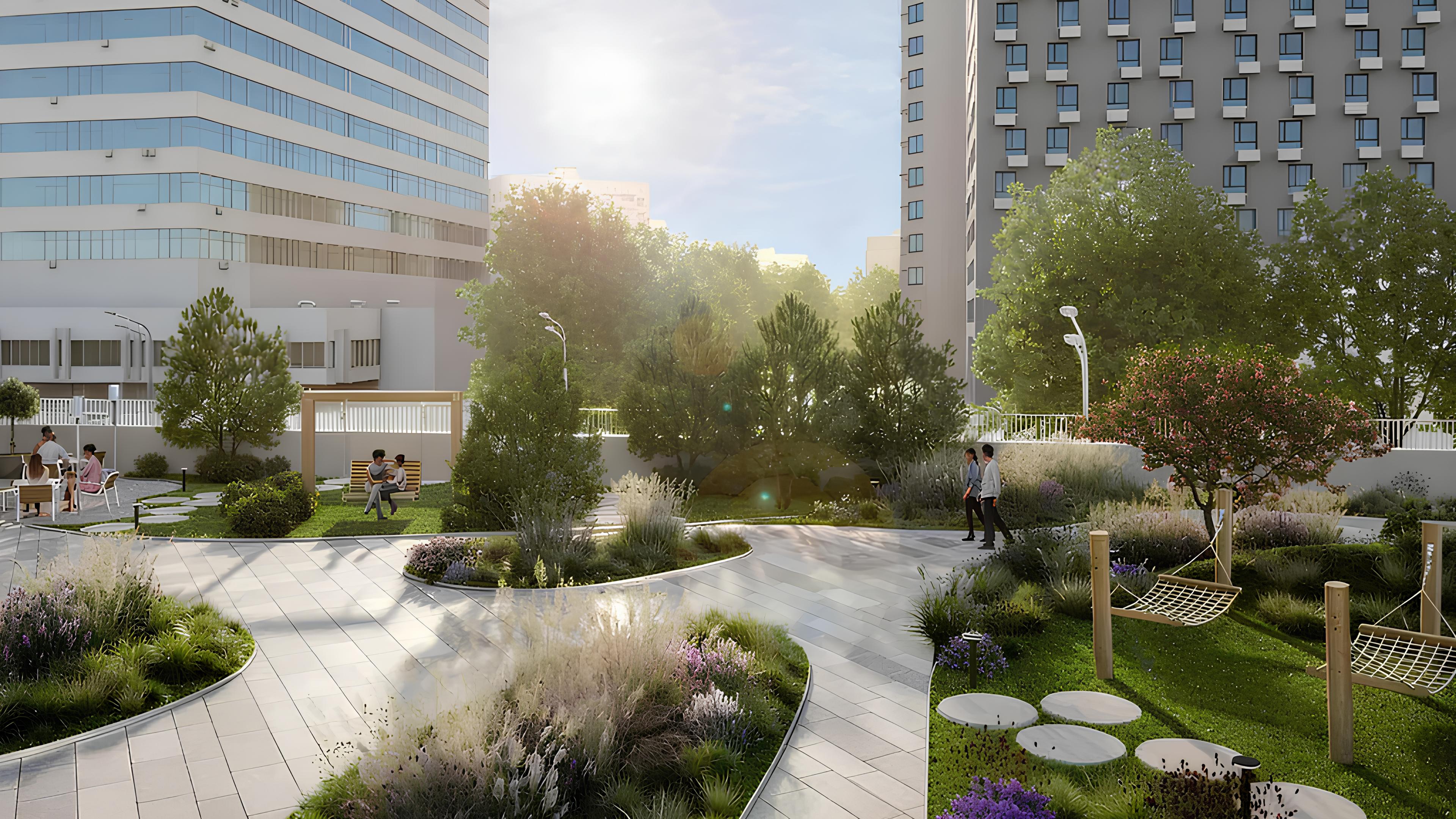 В проекте особое внимание уделено общественным зонам и местам для отдыха жителей. В составе комплекса предусмотрены: