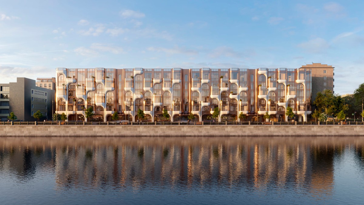 Проект выглядит как арт-объект на берегу Москвы-реки. За стеклом – потолки 3,2 м, просторные планировки и приватность настоящего клубного дома.