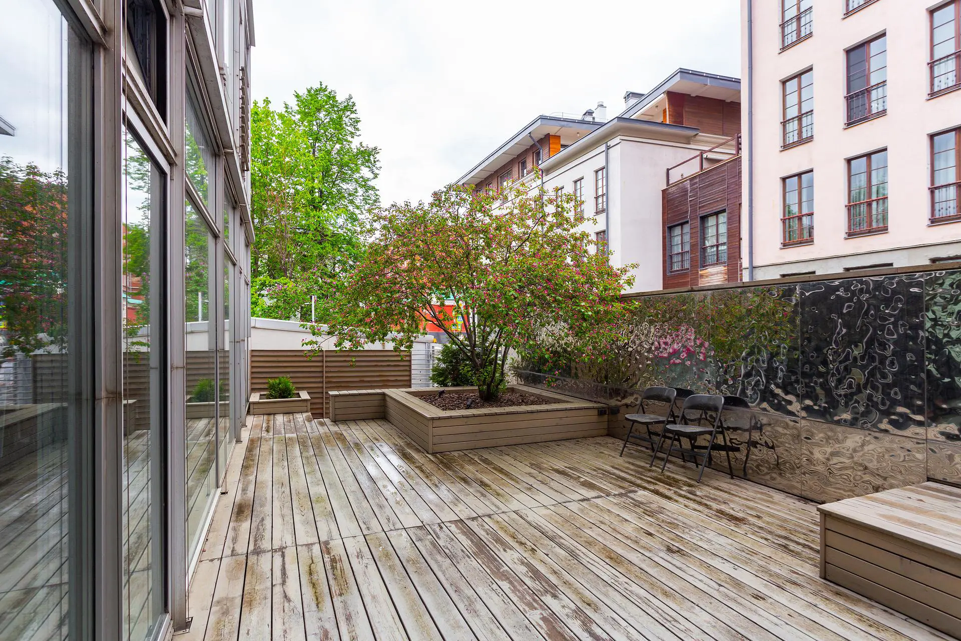 Квартира без отделки в клубном доме в Молочном переулке — редкое предложение в сердце Золотой Мили. Планировка предусматривает кухню-гостиную, три спальни и три санузла. Собственная терраса площадью 48 м² и возможность организации камина подчёркивают формат приватной резиденции. Высота потолков — 3,3 метра, окна выходят во внутренний двор.
