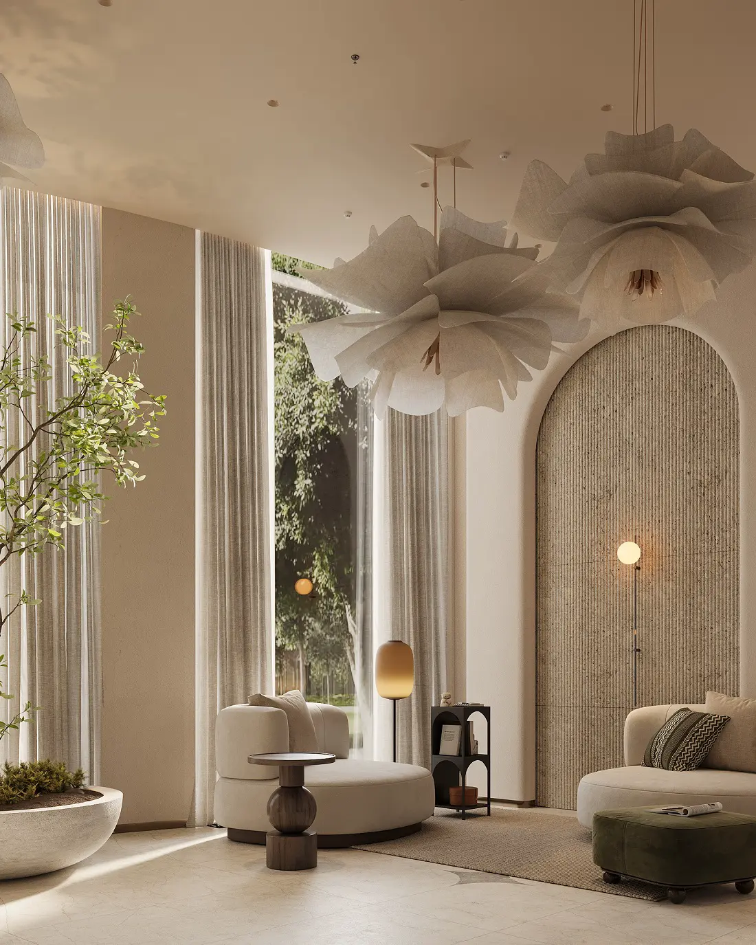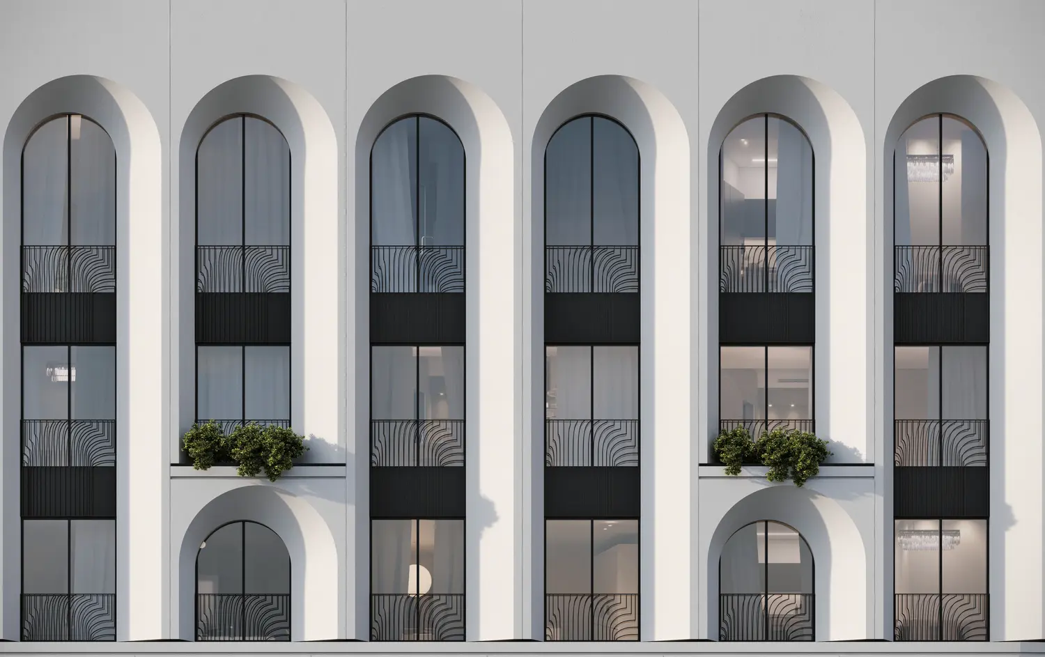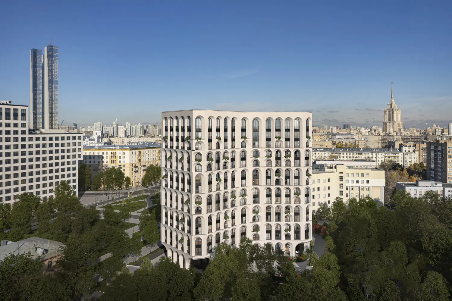 Ключевое преимущество — панорамные окна от пола до потолка, которые наполняют пространство естественным светом и воздухом, подчёркивая статус проекта и создавая комфортную, благородную среду для жизни в центре города.
