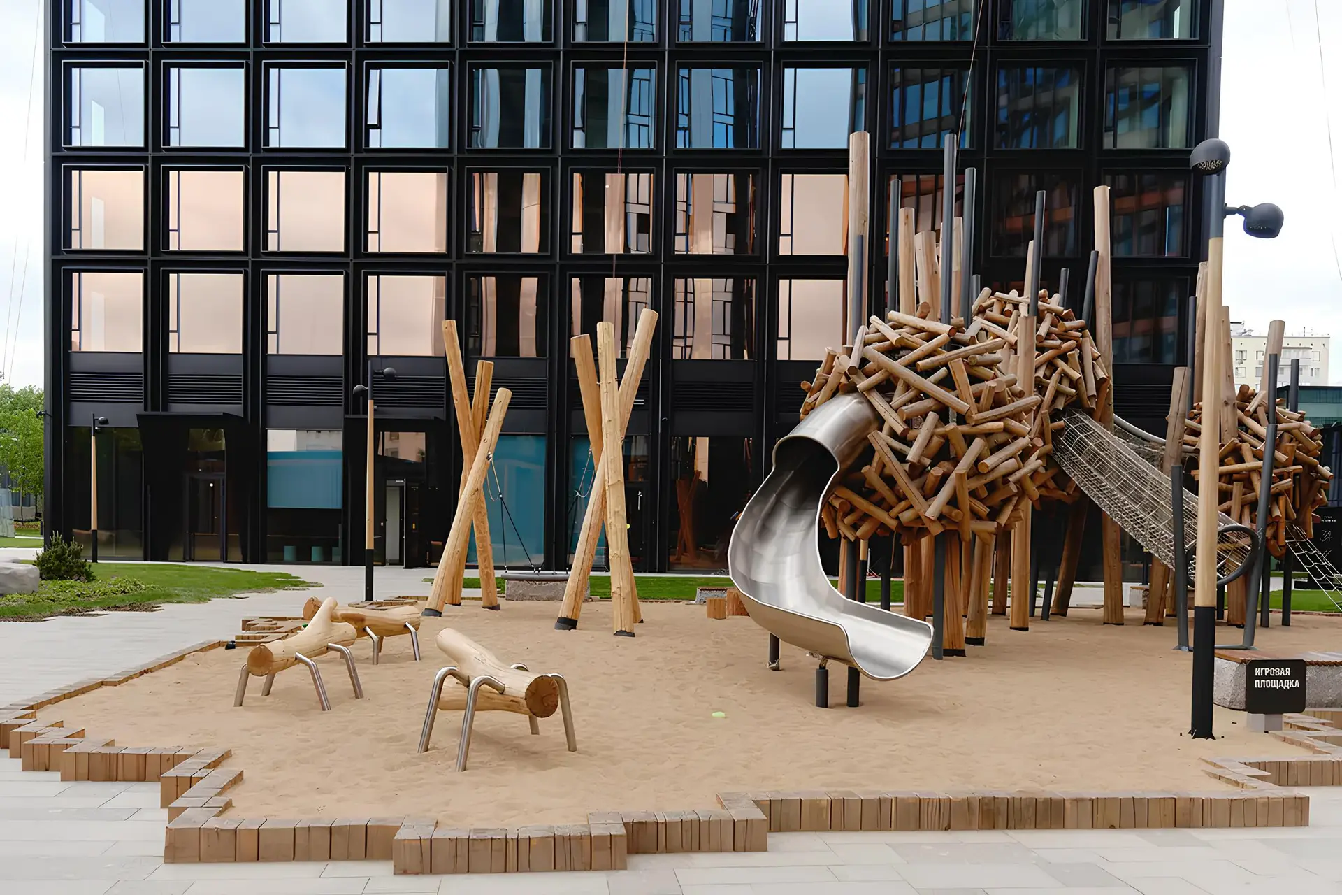 На территории комплекса — ландшафтный парк с зонами отдыха, фитнес-клуб с SPA, бассейны, коворкинг и рестораны. Расположение у метро «Дмитровская» обеспечивает отличную транспортную доступность.