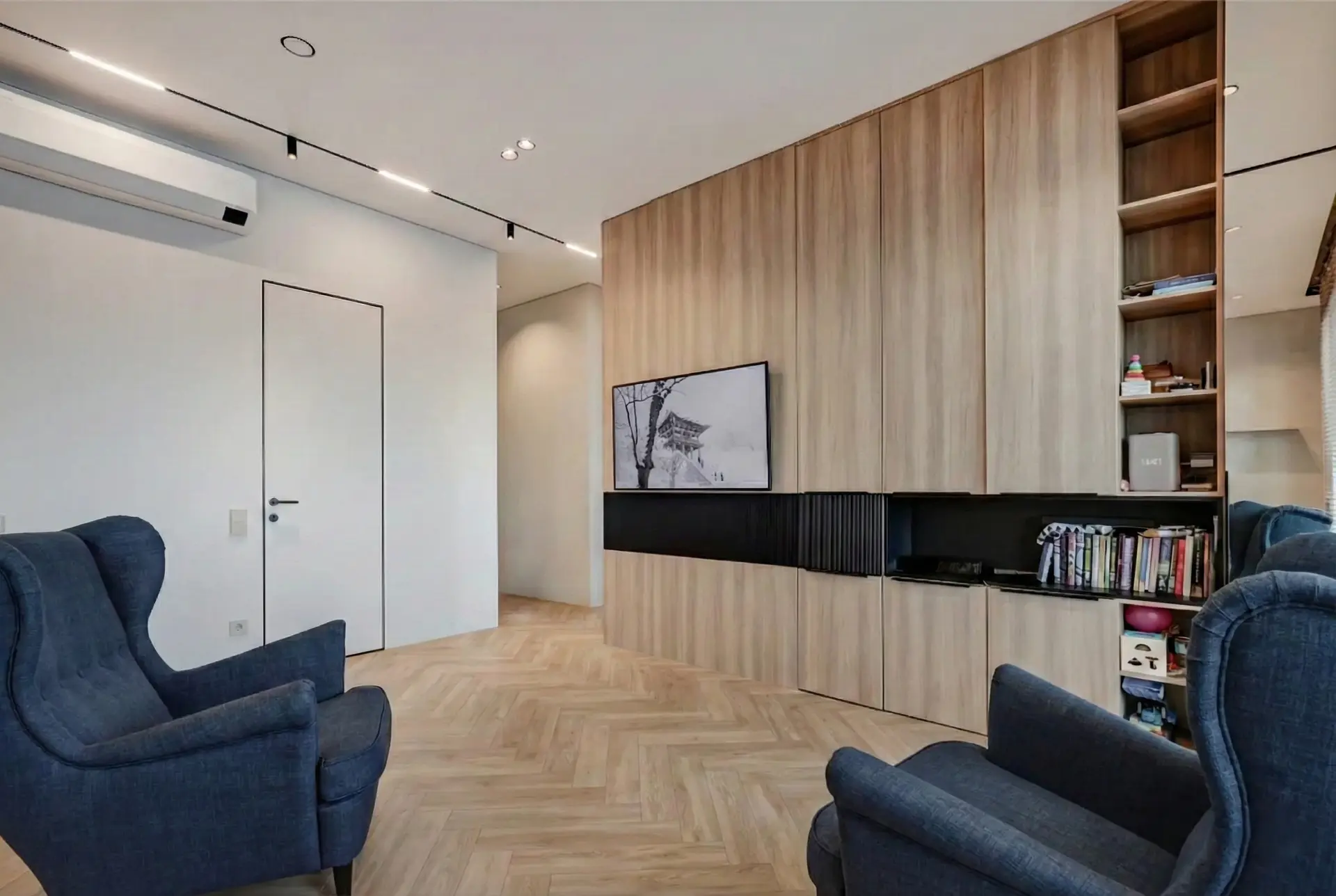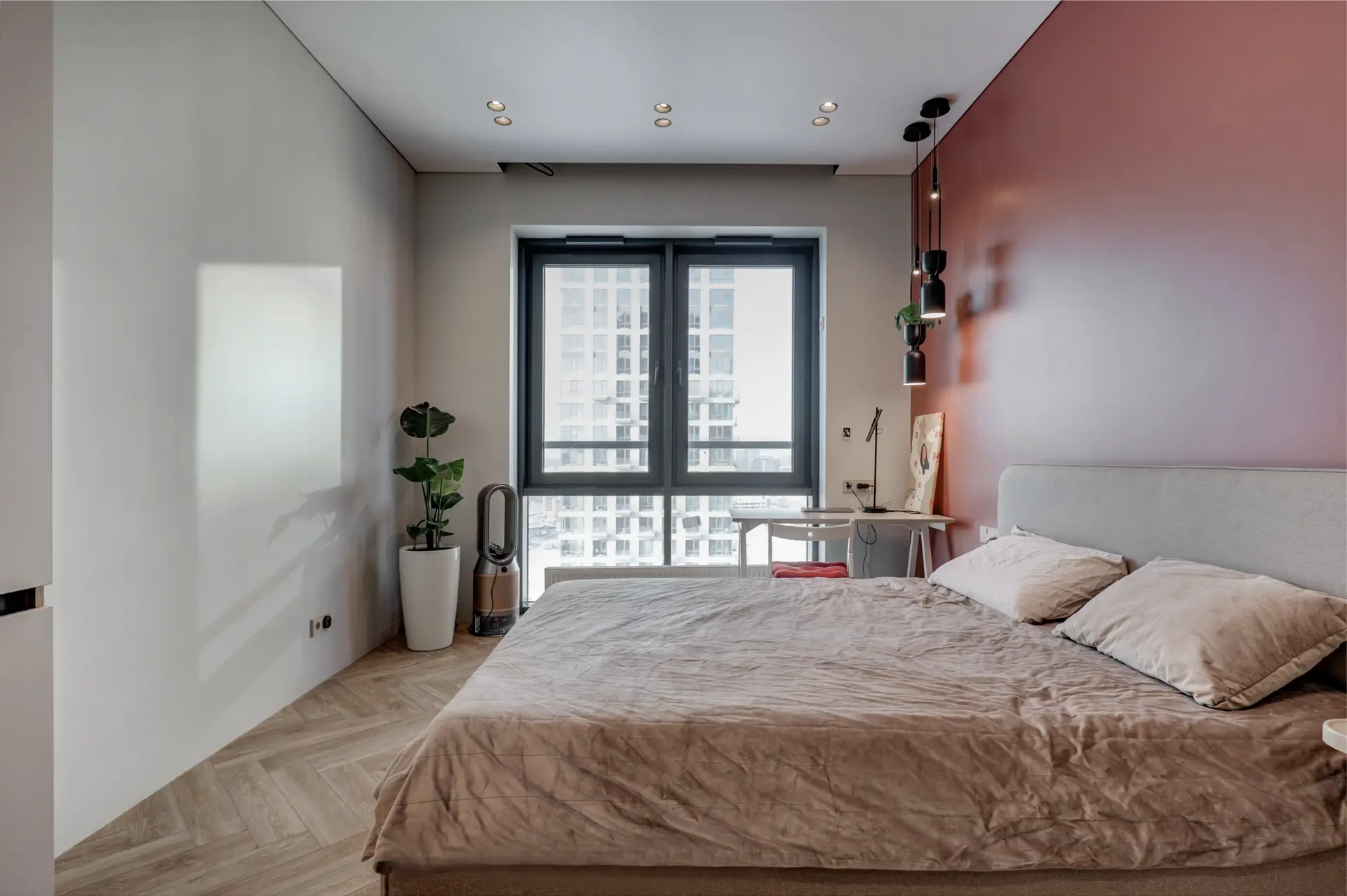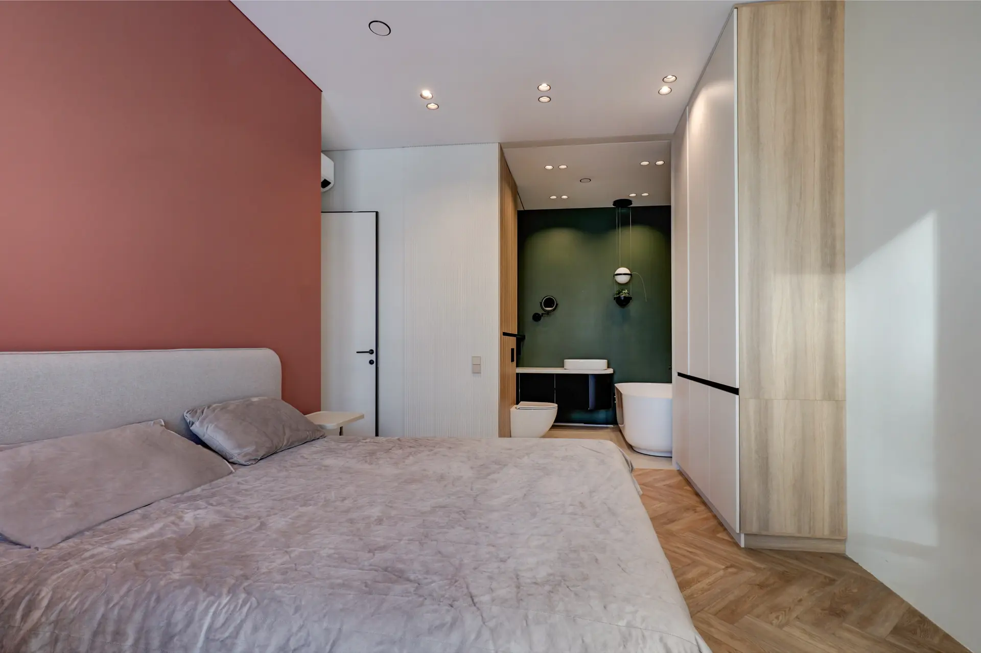 Интерьер выполнен по дизайнерскому проекту с премиальной отделкой. В квартире установлены кондиционеры с режимами холод/тепло, система защиты от протечек и скачков напряжения, электрошторы, техника Korting и мебель с фурнитурой Blum.