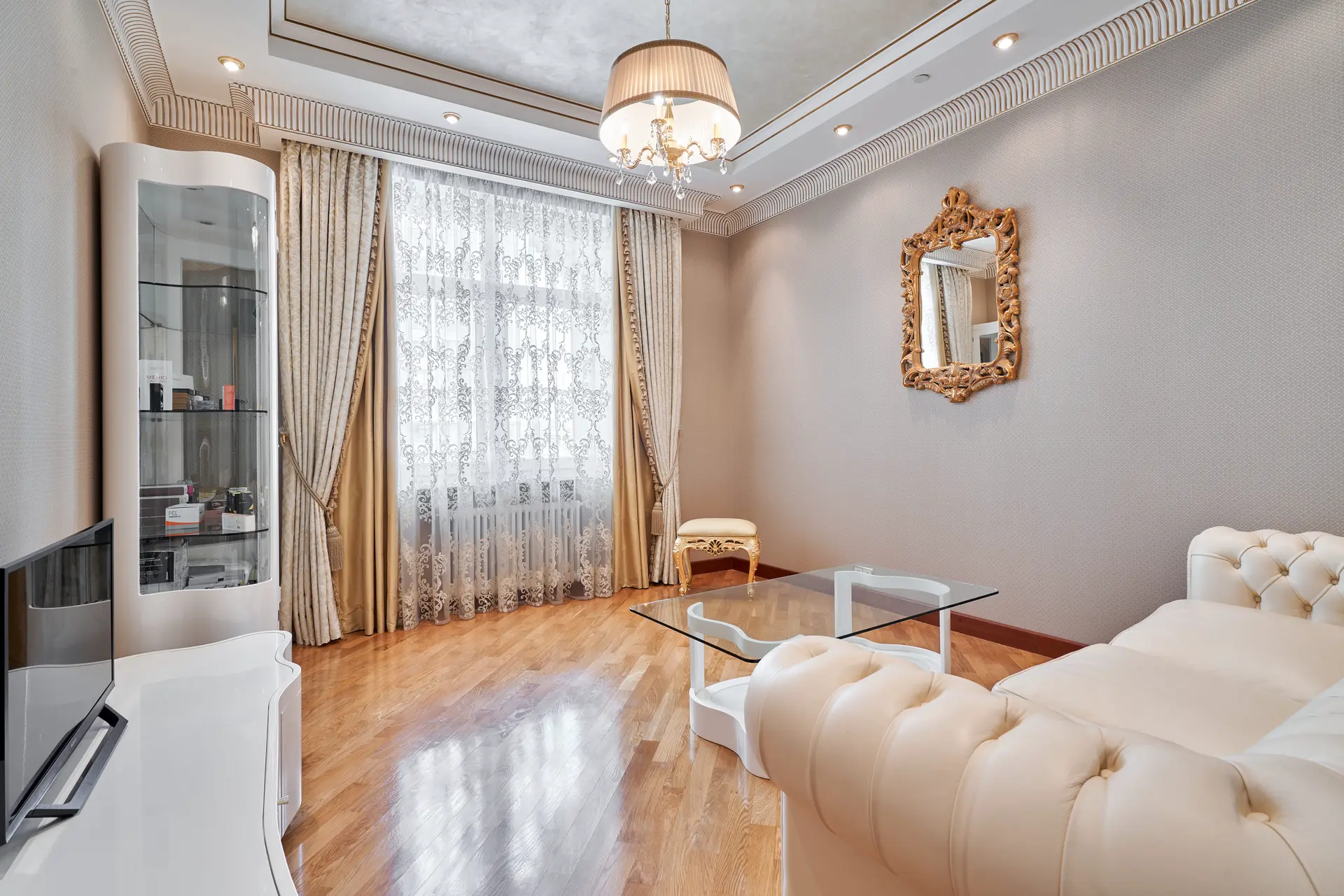 Эксклюзивное предложение в «Триумф-Паласе» с открытыми видами на яблоневый сад. Просторная квартира площадью 180 м² раскрывается на три стороны света: восемь окон наполняют интерьер естественным светом и ощущением воздуха.