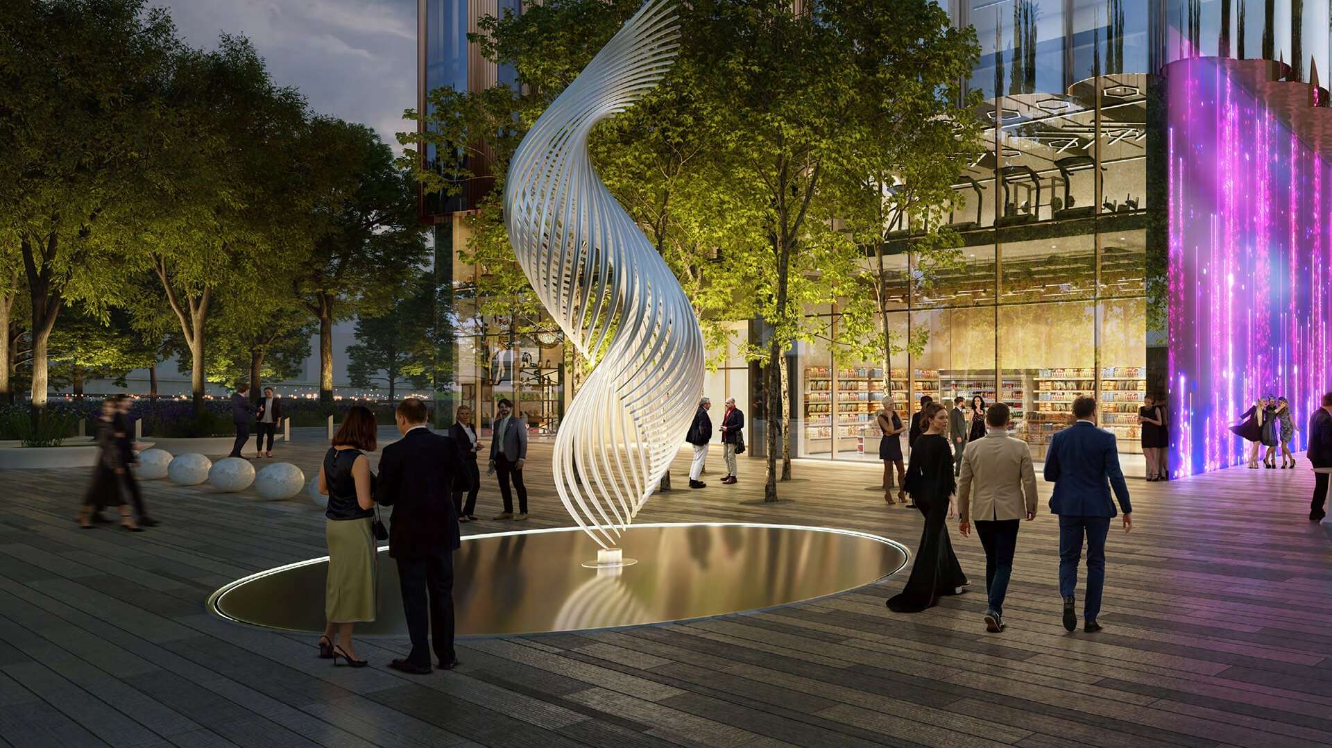 Внутренние дворы K-CITY спроектированы как места для релаксации посреди деловой активности. Это не проходные пространства, а полноценные зеленые зоны с ландшафтным дизайном, местами для тихого отдыха и неформального общения.