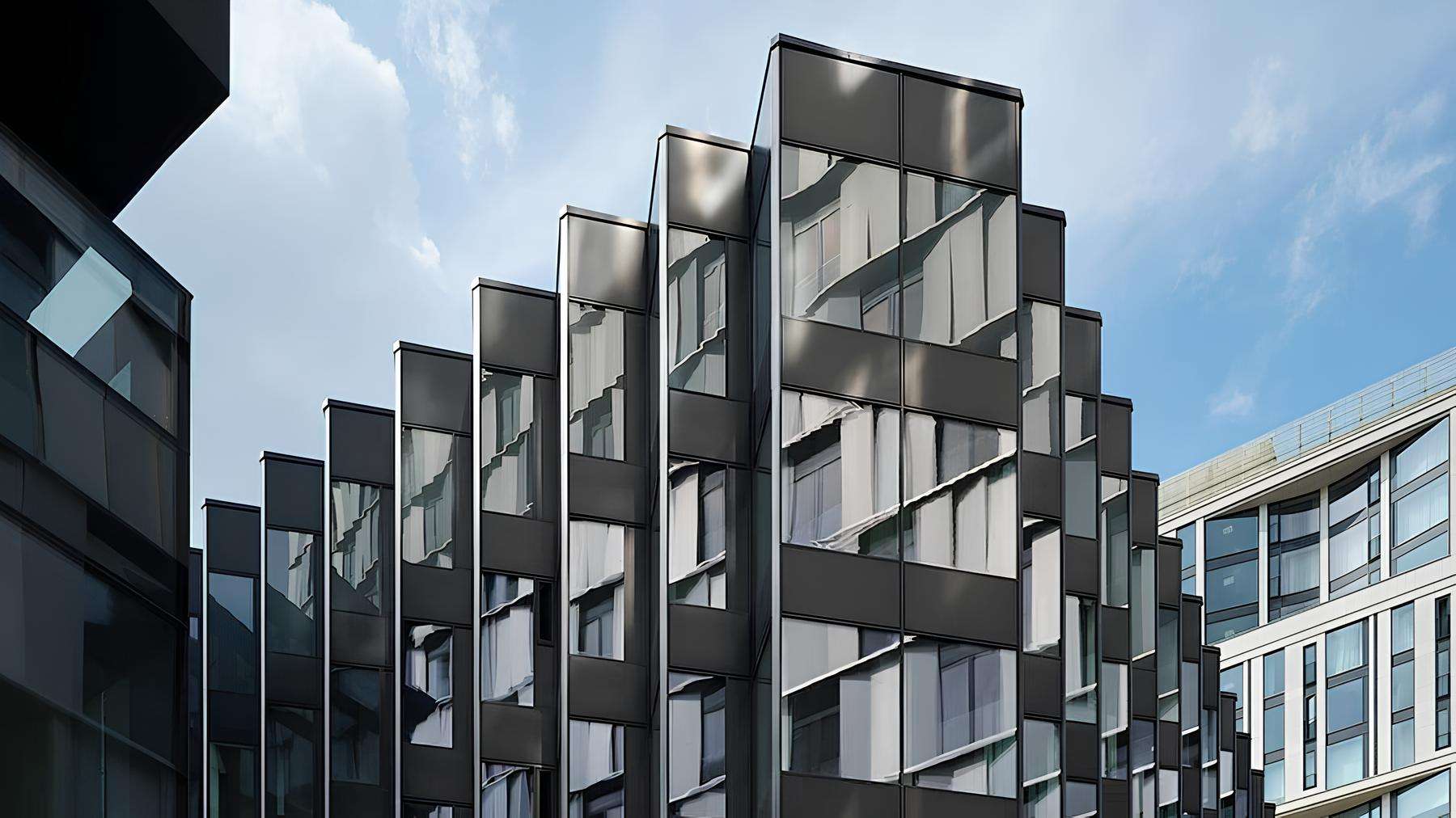 Фасад здания отличается уникальной зубчатой пластикой, создающей динамичный и современный образ. Эта особенность не только формирует эстетику, но и функционально обеспечивает превосходное естественное освещение.