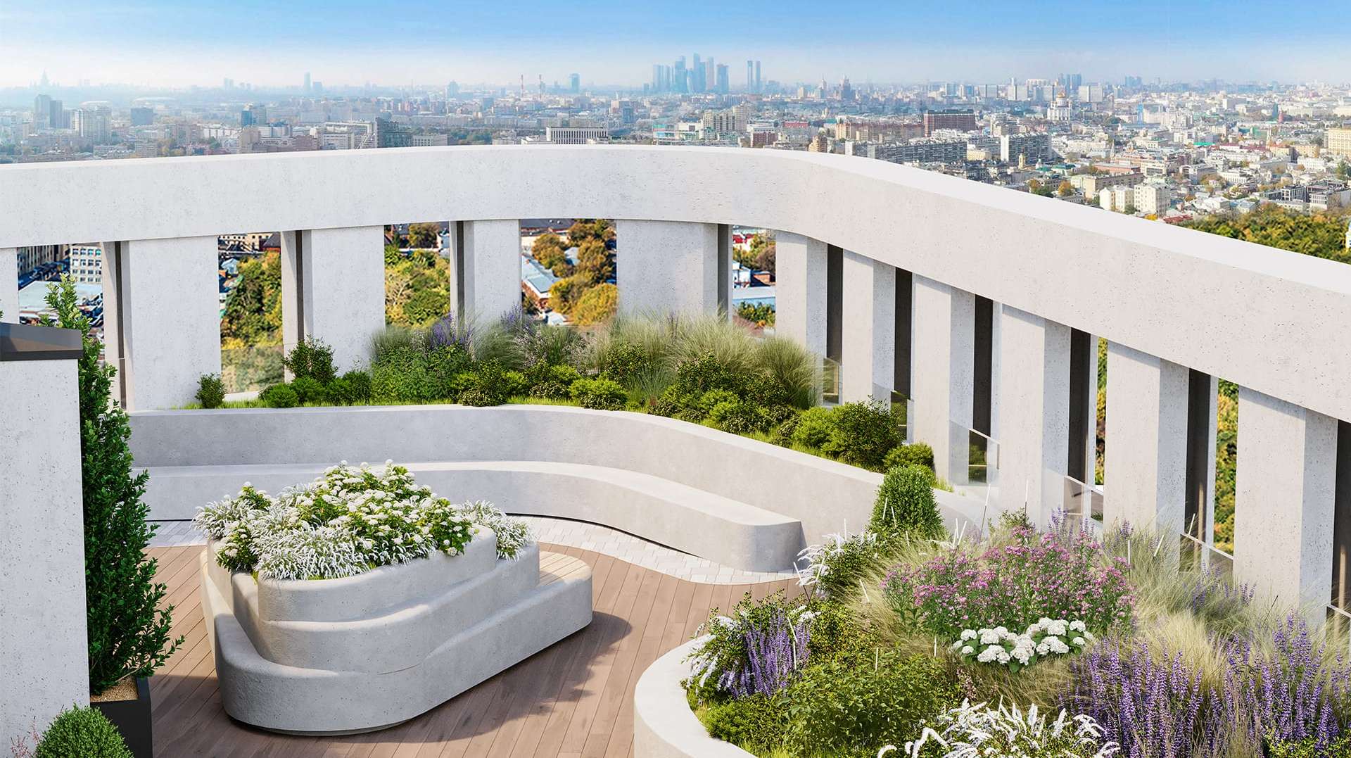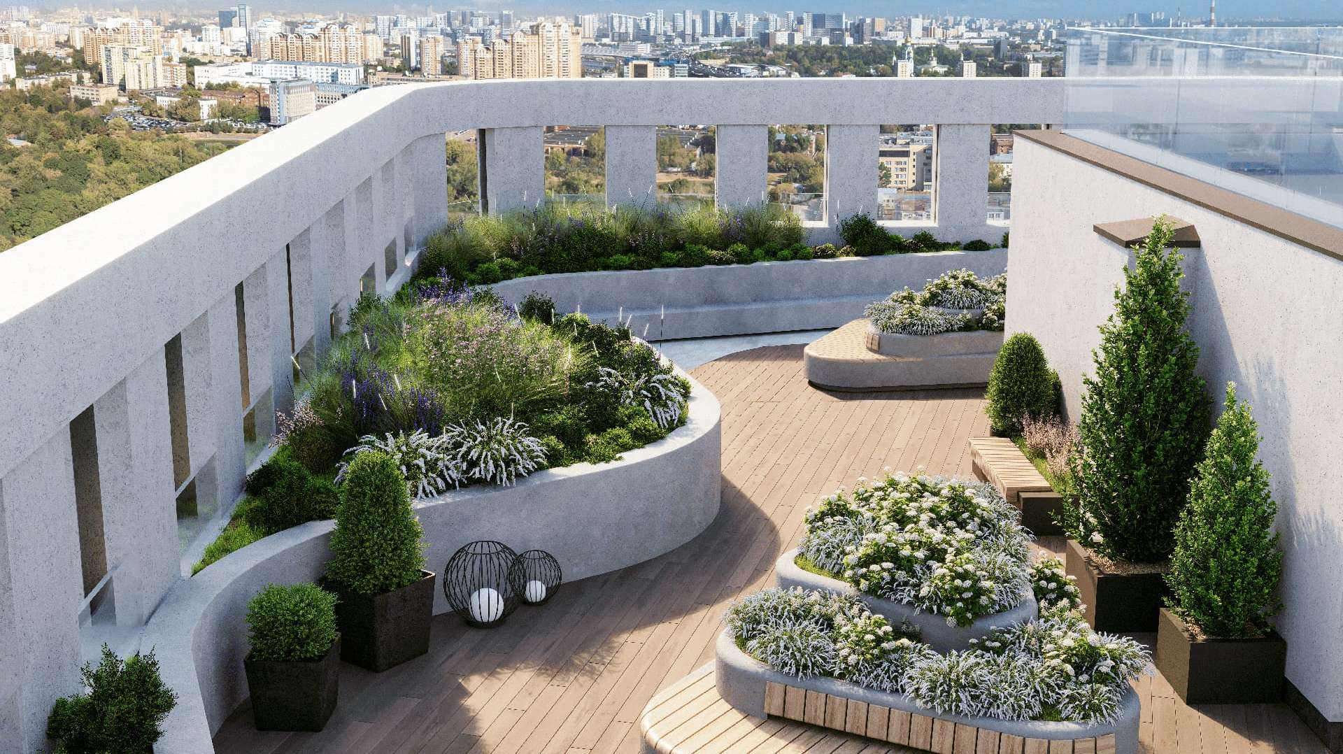 Хотя N'ICE TOWER — это высотная башня, концепция проекта не забывает о важности озеленения.