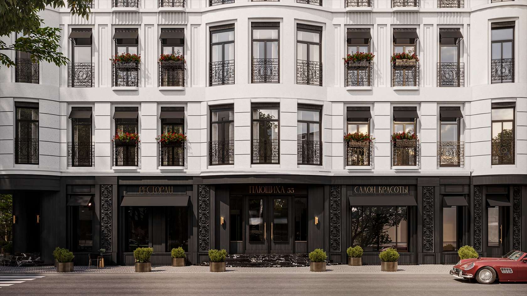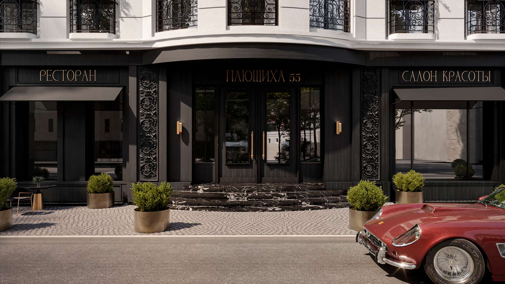 На первом этаже самого здания «Плющиха’55» также запланировано размещение ресторана, что добавит удобства резидентам. Рядом расположены зеленые скверы, где можно провести перерыв на свежем воздухе.