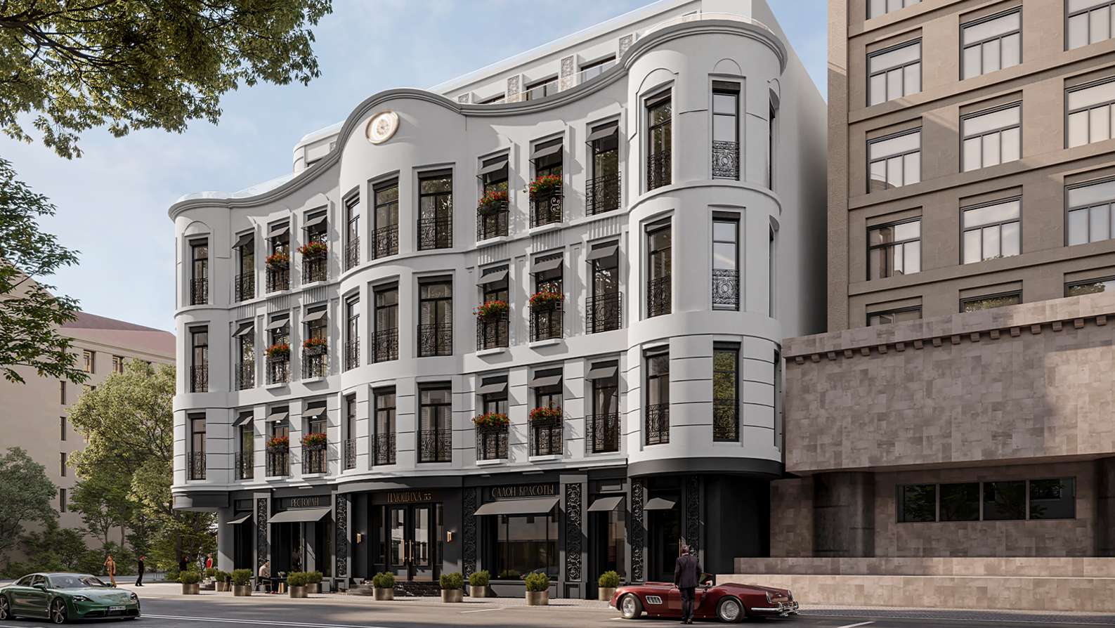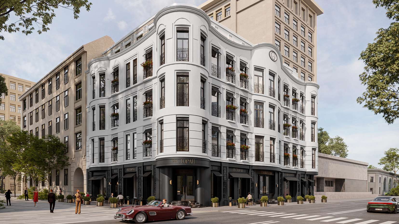 Уникальные архитектурные элементы, такие как эркеры и французские балконы с коваными ограждениями, создают респектабельный облик. Панорамные окна в пол высотой три метра обеспечивают прекрасное естественное освещение рабочих пространств.