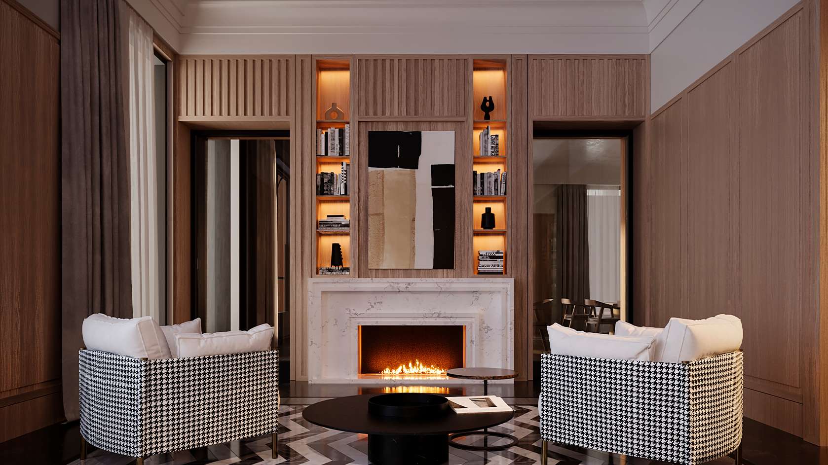 Высота потолков варьируется от 3 до 4.2 метра, создавая ощущение простора и свободы. Отделка выполняется с использованием высококачественных материалов, соответствующих философии old money: дерево, мрамор и латунь.