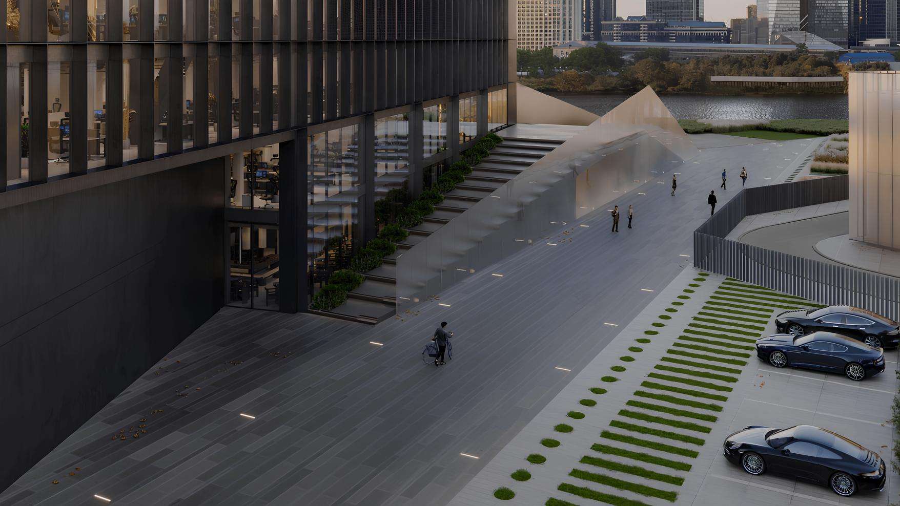 Проект гармонично интегрирован в благоустроенную набережную Москвы-реки с беговыми дорожками, что предоставляет резидентам уникальную возможность для прогулок или деловых бесед на открытом воздухе. Пространство перед зданием превратится в уютную пешеходную площадь с зелёными насаждениями и местами для отдыха, создавая островок спокойствия в городской динамике.