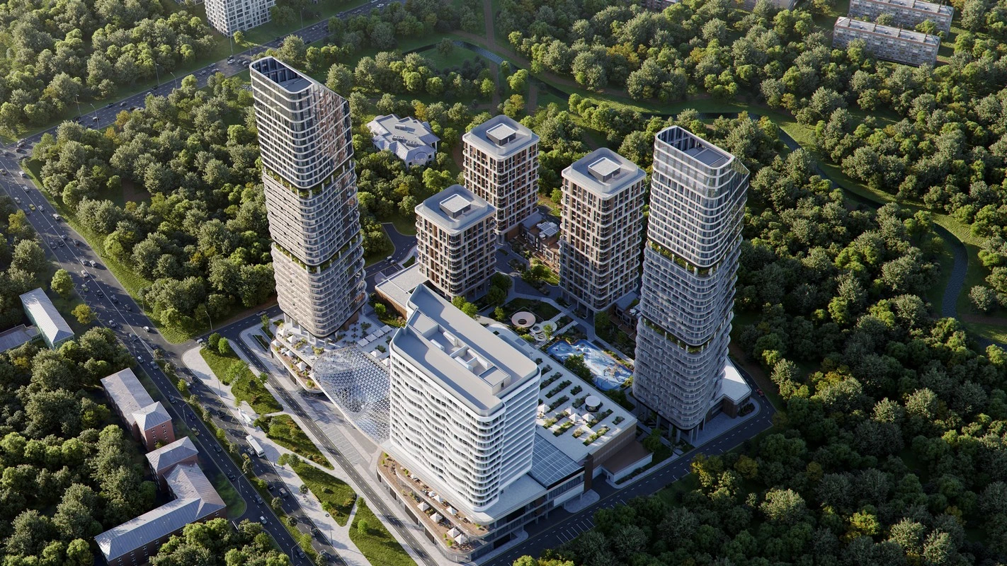 Динамику и запоминающийся вид зданию придает уникальная волнистая геометрия балконов и индивидуальных террас. Благодаря такому подходу, архитектура не просто функциональна, но и создает особую атмосферу вдохновения и умиротворения.