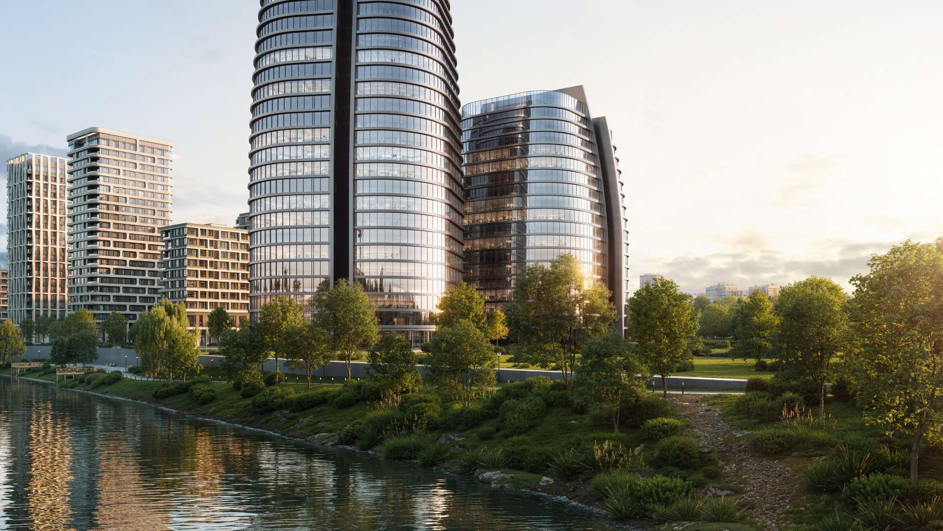 Архитектурная концепция проекта создавалась с целью гармоничного сочетания урбанистики и природы. Здания выполнены в строгом современном стиле с использованием стекла, металла и бетона.