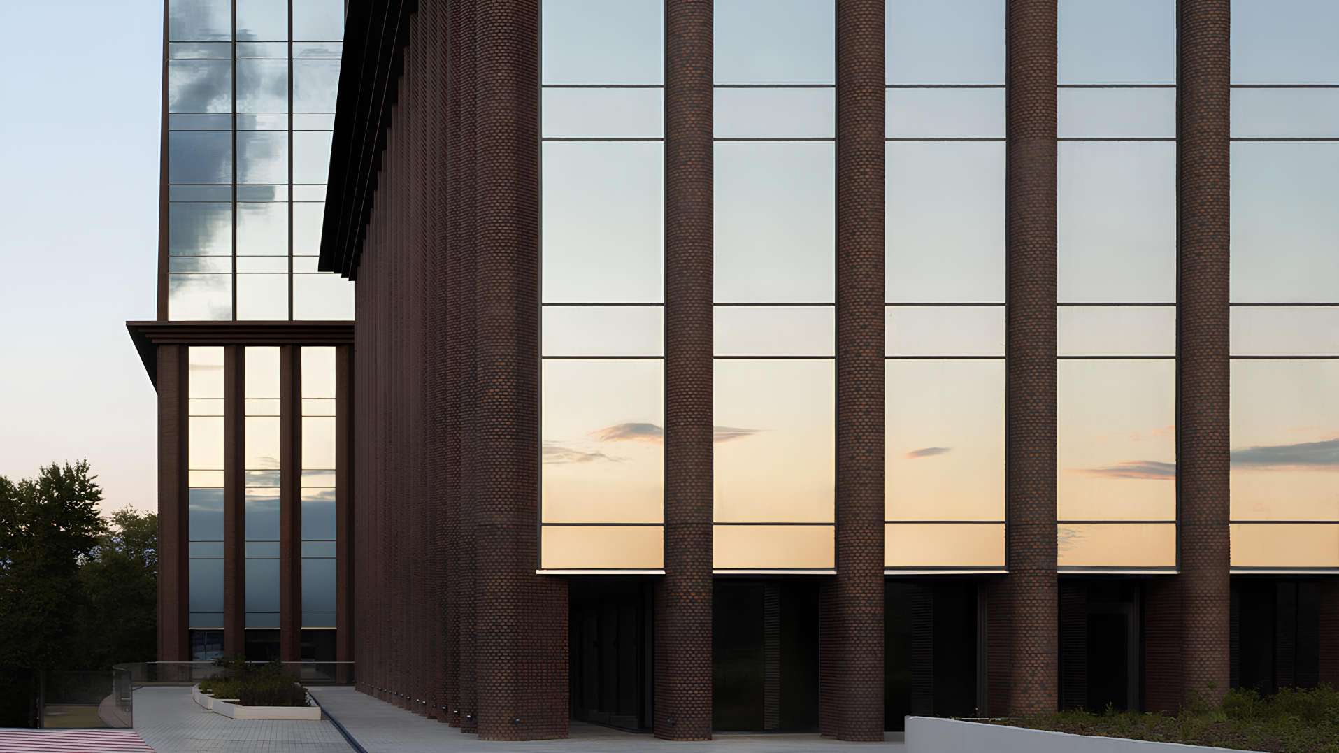 Панорамное остекление обеспечивает прекрасное естественное освещение рабочих пространств в течение всего дня. Общий облик здания создает образ динамичной и технологичной бизнес-среды.