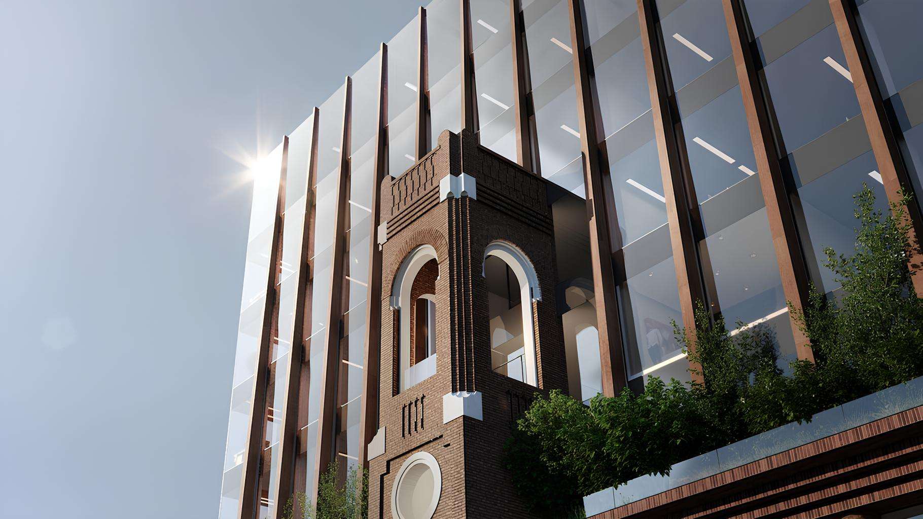 Архитектурная концепция здания построена на принципах современного урбанизма и функциональности. Фасад выполнен с использованием высококачественных материалов, включая стекло и композитные панели.