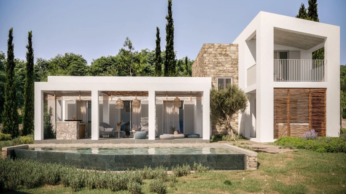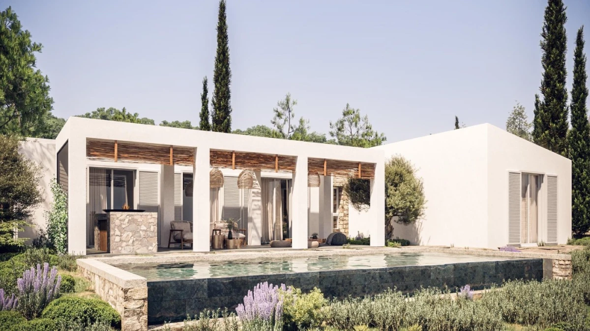 Каждая вилла выполнена в современном средиземноморском стиле с просторными планировками, частными бассейнами, террасами, цветущими садами и потрясающими видами на море.