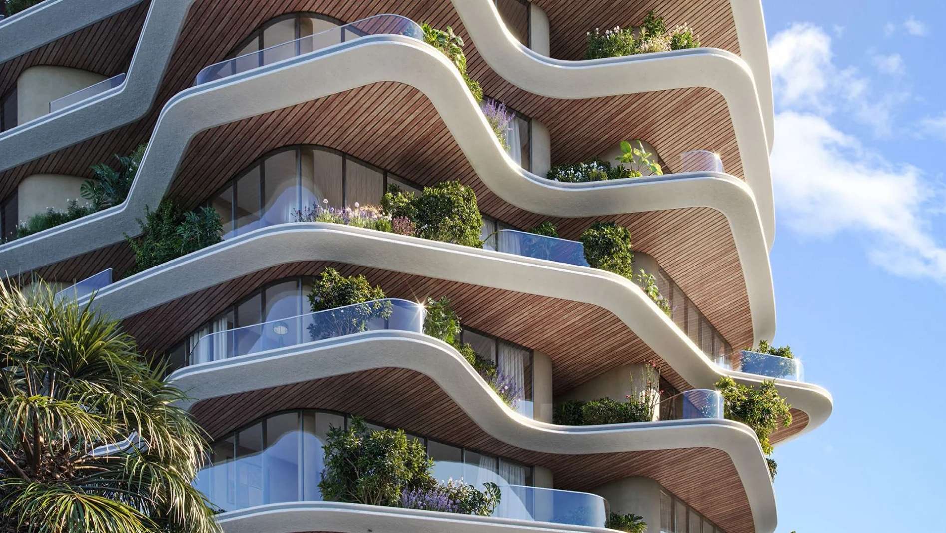 Архитекторы использовали мягкие, изогнутые линии, чтобы визуально смягчить фасады и создать ощущение постоянного движения, подобного морским волнам. Это придает комплексу скульптурную выразительность и отличает его от других.