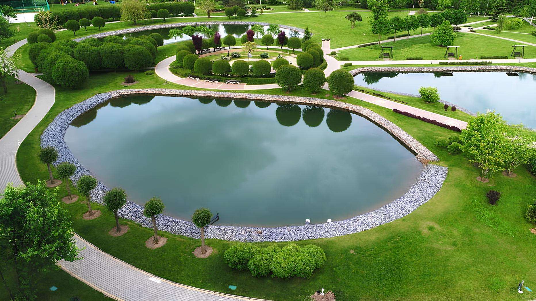 На территории поселка разбито пять тематических парков, таких как «Парк трех озер» в китайском стиле и парк «Остров» с античными статуями, которые служат местом для прогулок и отдыха. Вдоль прогулочных зон и каналов обустроены набережные с многочисленными скамьями, верандами и зонами для пикников с мангалами.