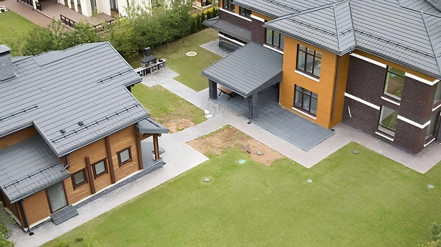 Многие дома спроектированы с большими террасами, откуда открываются виды на лес или парк, а просторные участки позволяют создавать частные сады. Центральным элементом поселка является огромный парк во французском стиле, разбитый на берегу озера, с каскадами фонтанов, скульптур и цветников.
