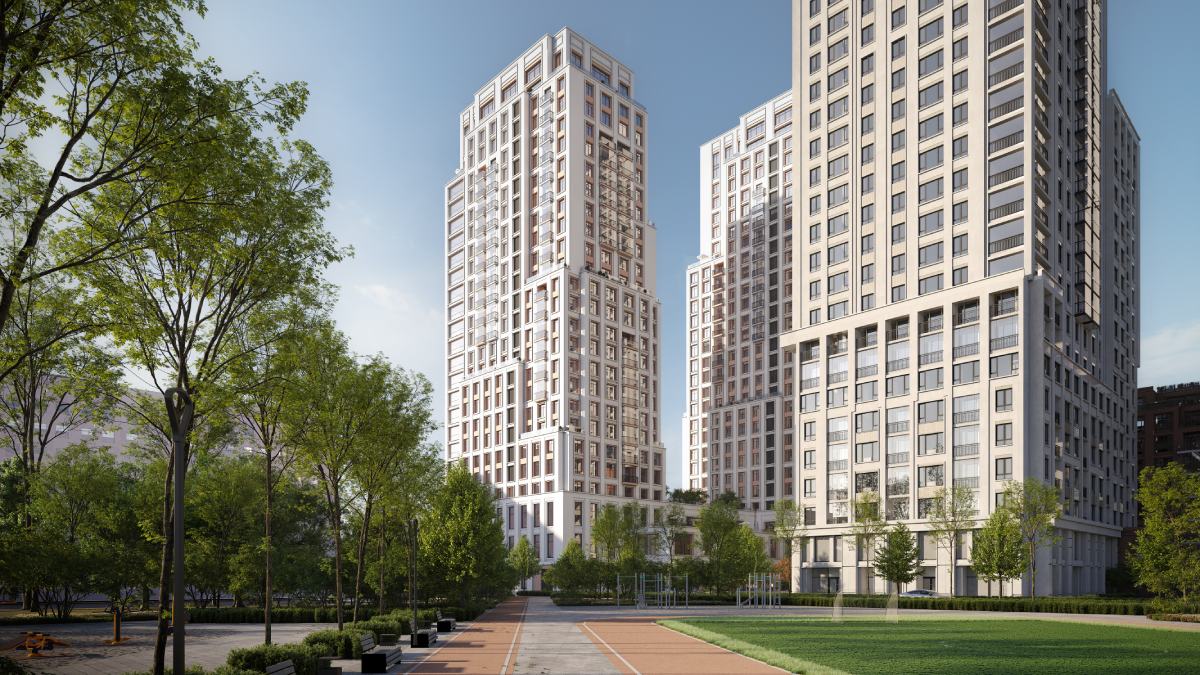 Проект создан по концепции «города в городе»: с уютными площадями, чередой бульваров, сквером, а также офисными и торговыми пространствами.