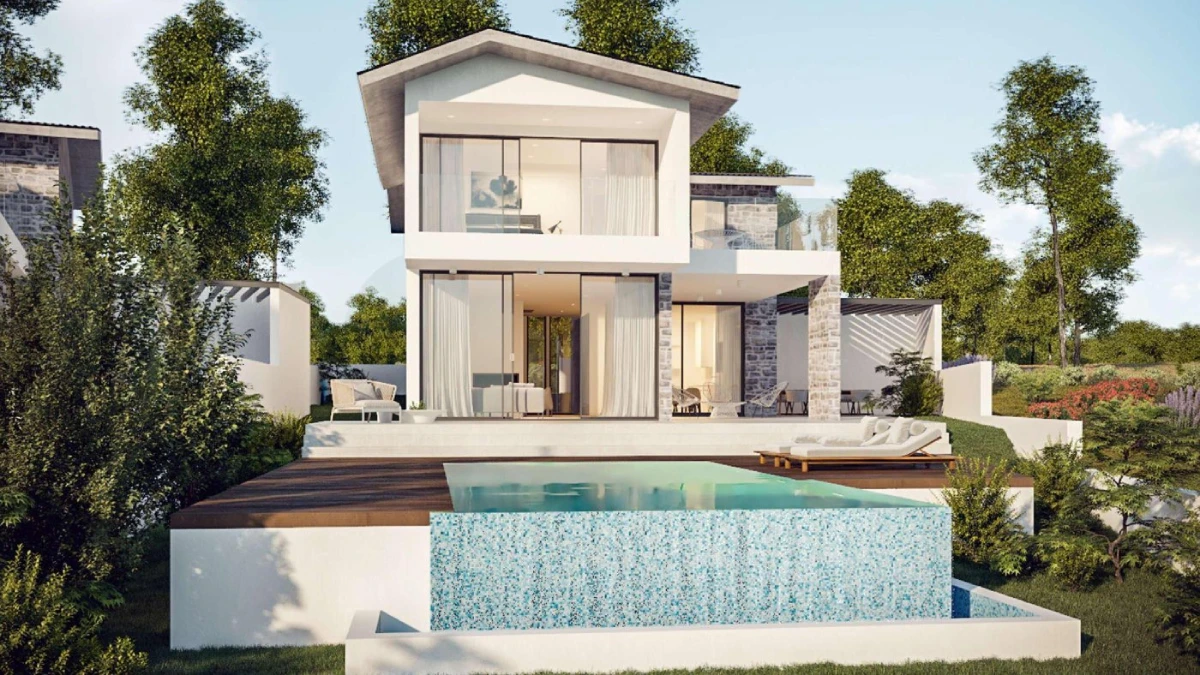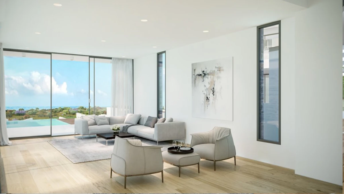 Из окон от пола до потолка открывается захватывающий панорамный вид на Средиземное море, национальный парк Акамас и заповедный сосновый лес Пикни, создавая ощущение единства с природой. Все виллы обладают открытой планировкой и имеют собственные инфинити-бассейны.
