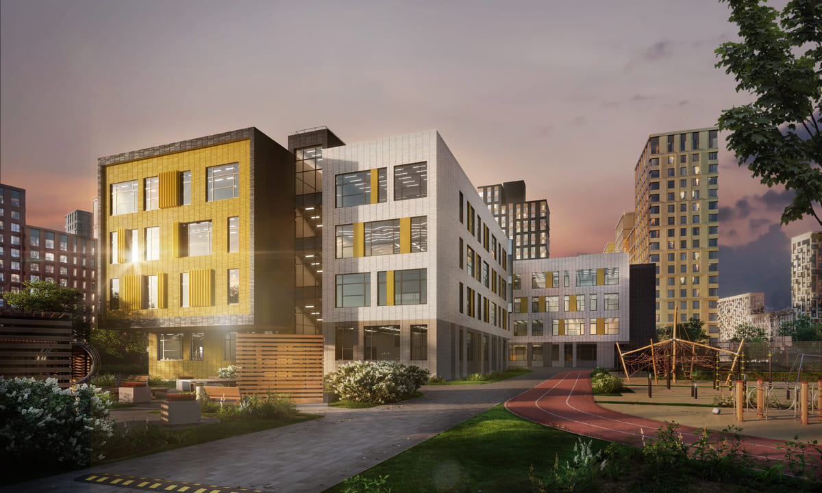 Для семей предусмотрено всё необходимое: 2 детских сада на 650 мест и 2 школы на 1925 учеников – образовательная среда, встроенная в жилое пространство, исключающая ежедневные поездки по городу.
