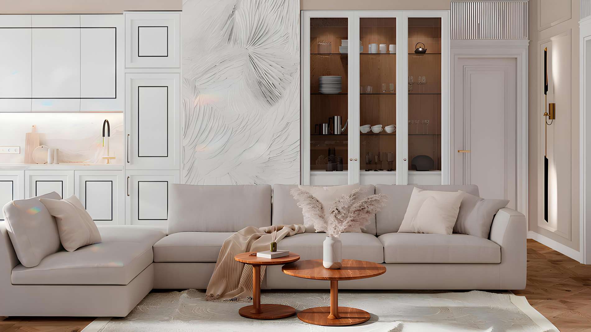 Высокие потолки и большие оконные проемы наполняют пространства светом и визуальной легкостью.