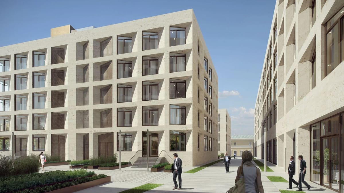 Проект разработан бюро «БРТ РУС», которое воплотило в жизнь гармоничный ансамбль из пяти особняков высотой от 2 до 7 этажей.