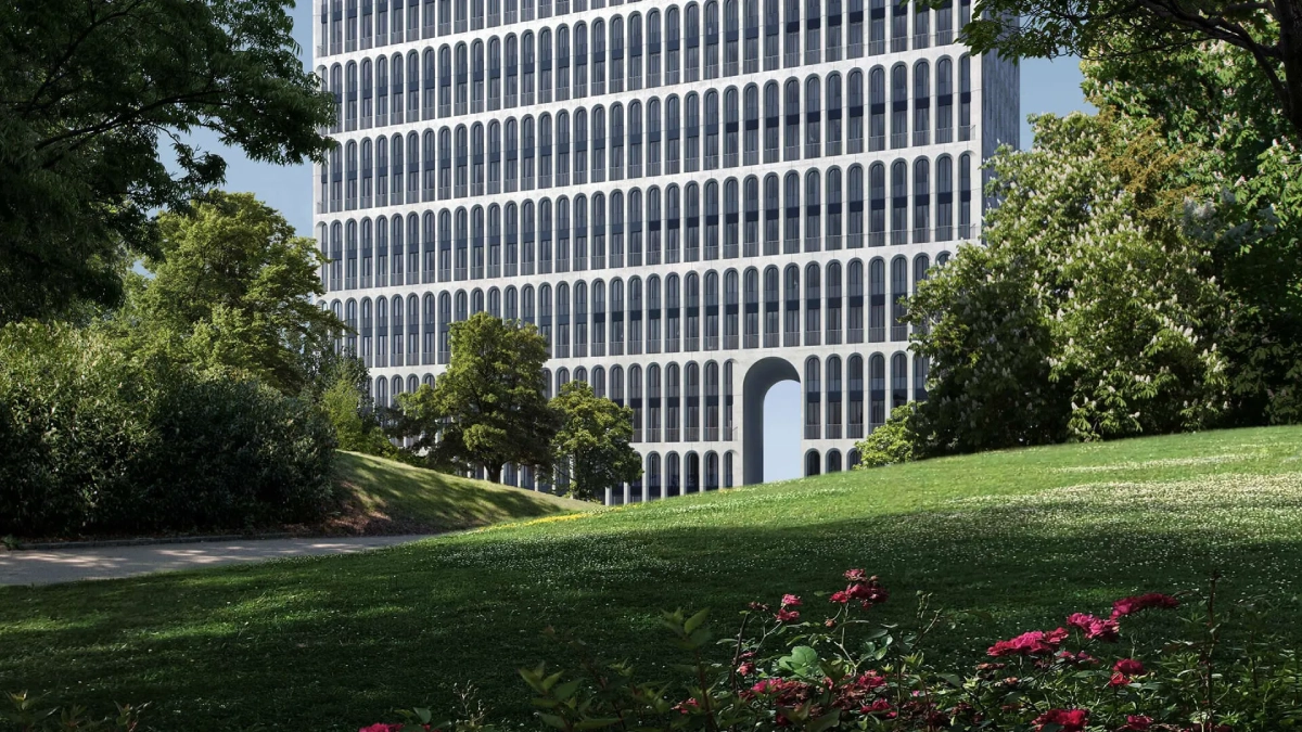 Здание выполнено в стиле современной интерпретации классицизма с доминирующим элементом— арочными конструкциями.