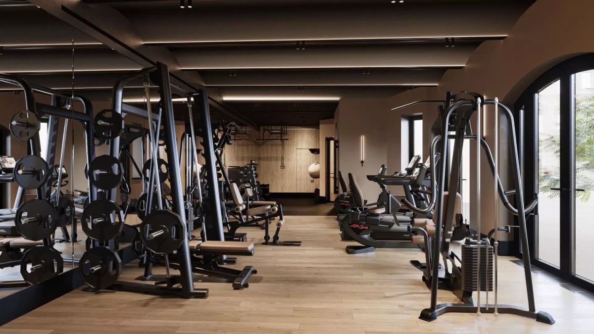 Бесплатный фитнес по стандарту Fit Lab с зонами для кардио, силовых тренажёров, свободных весов и функционального тренинга выполнен в элегантном дизайне с отделкой премиальными материалами.