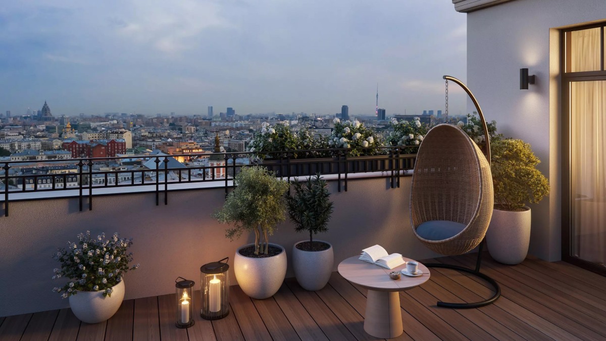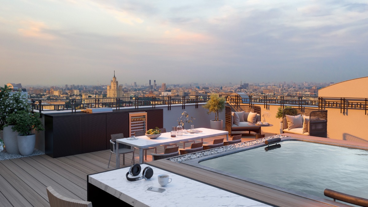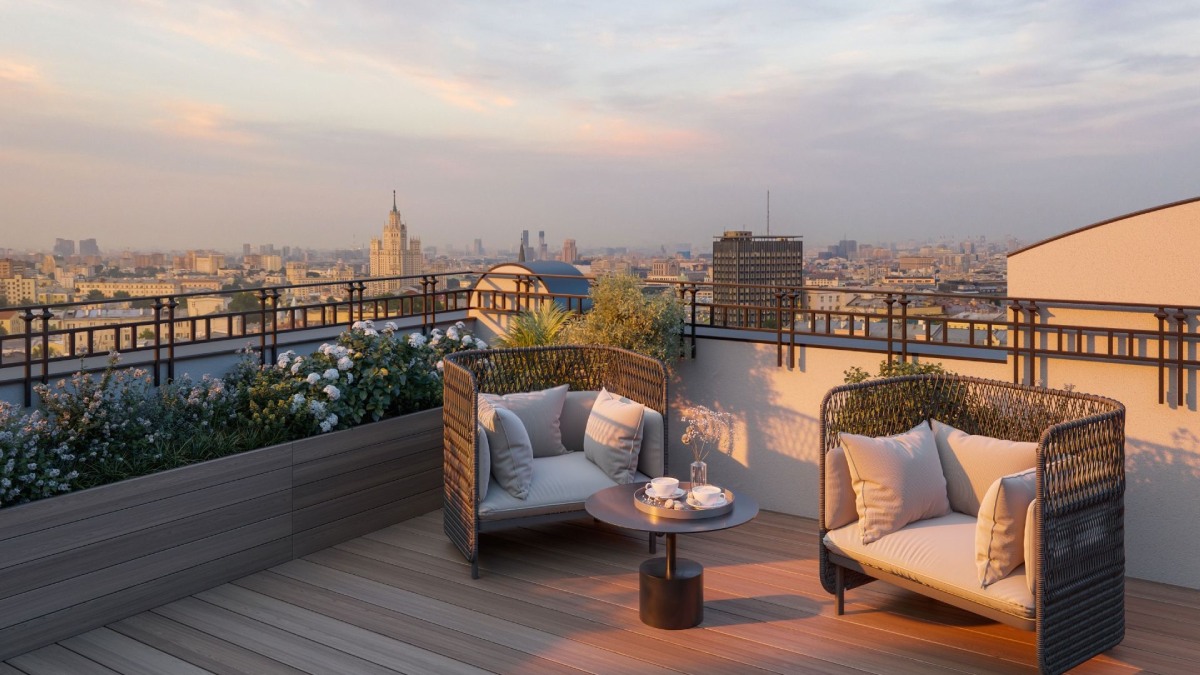 В двухэтажных пентхаусах созданы собственные террасы, на которых можно проводить тихие вечера, наслаждаясь видом на старую Москву, Чистопрудный бульвар и Кремль. Планировки продуманы до мельчайших деталей с максимальным функционалом.