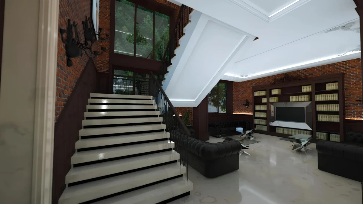 Парадные входные группы оформлены в стиле современного английского клуба – с использованием натуральных материалов, мягкого освещения и панорамного остекления. Лобби подчёркивают статус дома и создают ощущение приватности для резидентов.