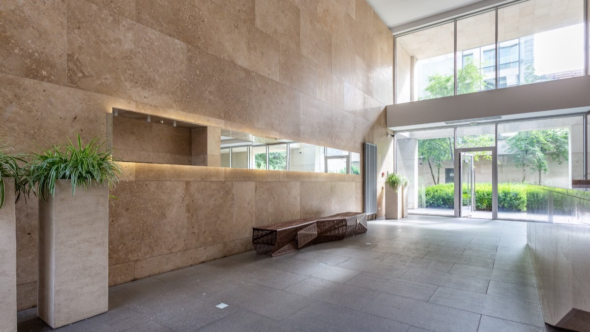 Интерьеры лобби гармонируют с архитектурным стилем комплекса: просторные зоны ожидания, стойка ресепшена и элегантный дизайн создают атмосферу статуса и уюта с первых минут пребывания в доме.