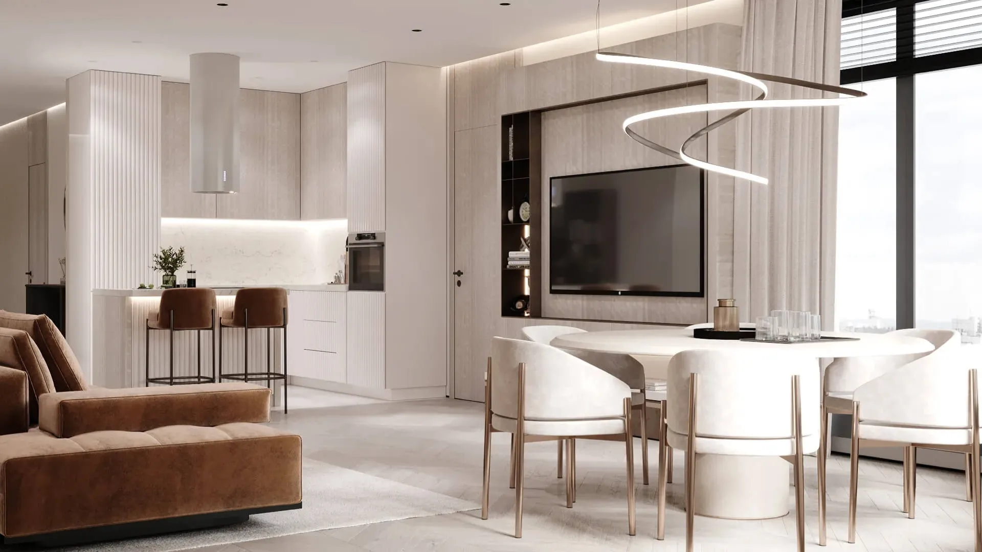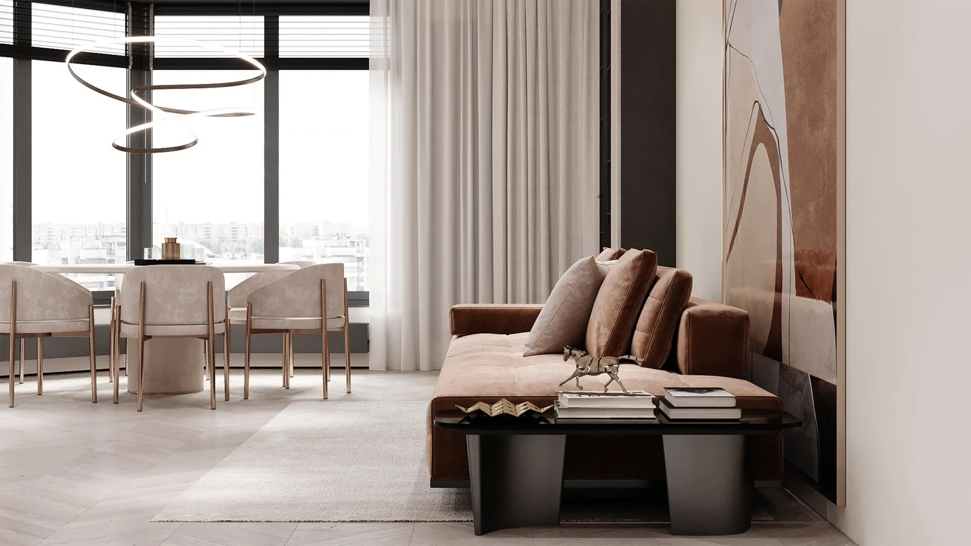 Высокие потолки, утонченная отделка и идеально подобранная мебель в нейтральных и благородных тонах создают ощущение исключительности и роскоши.