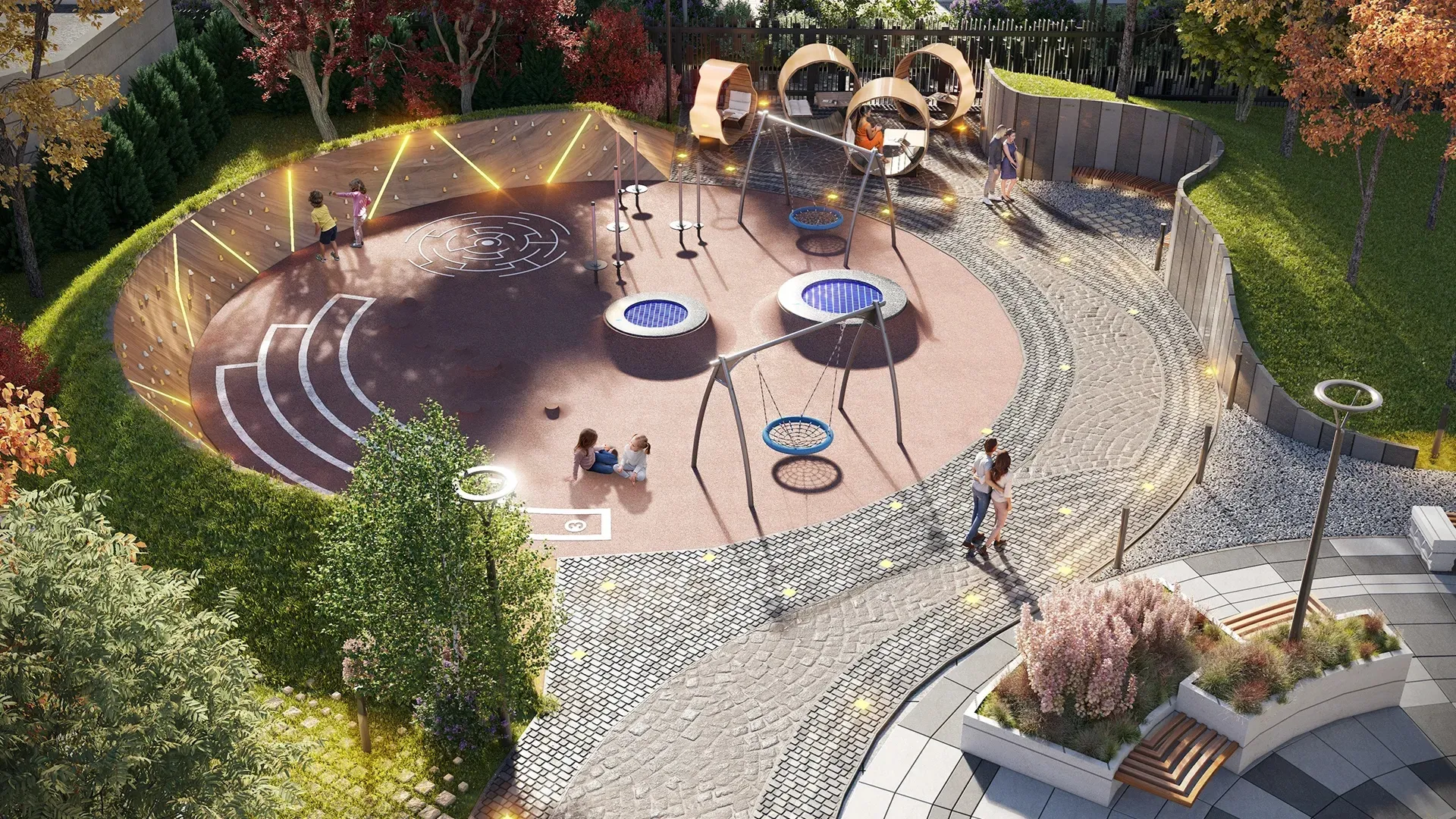 Детская игровая площадка с качественным оборудованием и уникальным скалодромом обеспечит безопасный и развивающий досуг для самых маленьких резидентов.