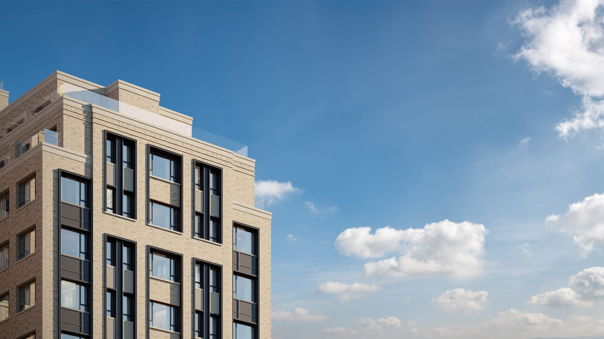 Фасады оформлены с применением контрастных материалов: архитектурного бетона, натурального камня, кирпича и металла. Стилистика здания отсылает к американской классике – духу традиционных домов Вашингтона, южного Манхэттена и Бостона.