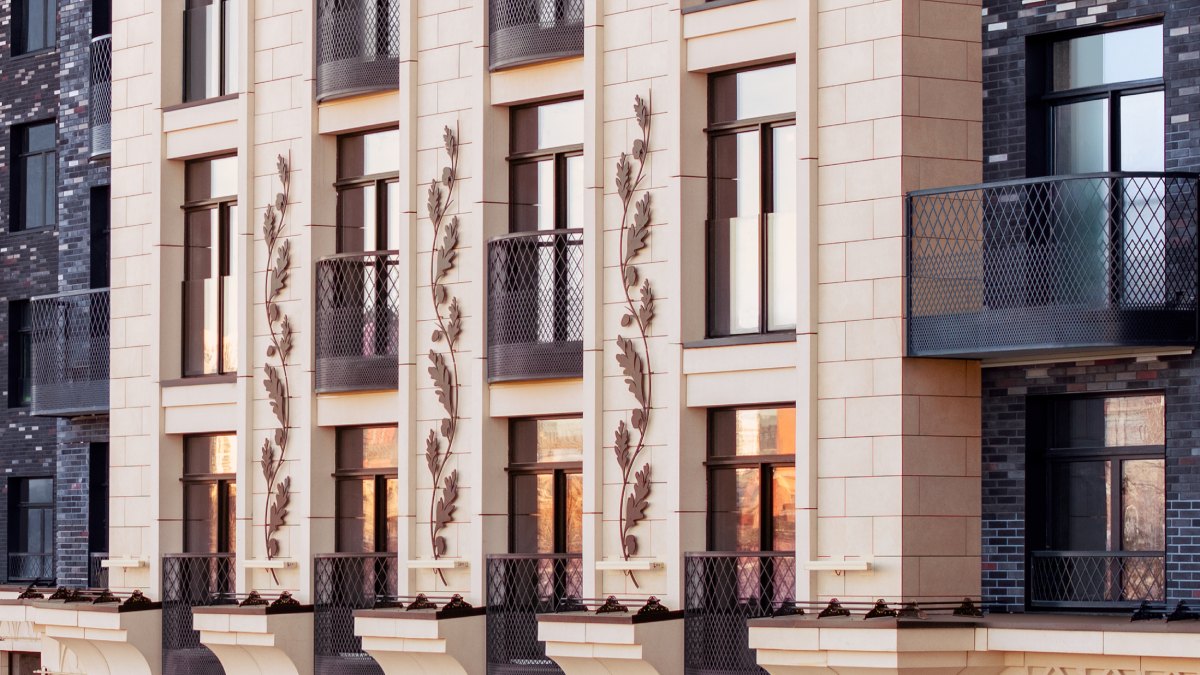 Выразительные пики, декоративные арки, балконы с коваными элементами, ризалиты и карнизы создают ощущение аристократизма и масштаба.