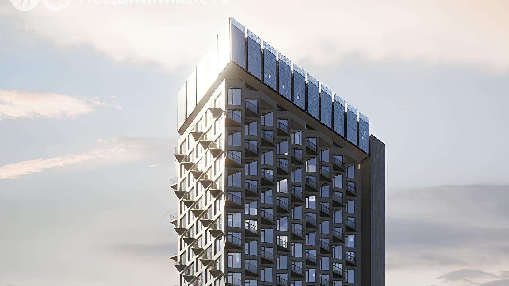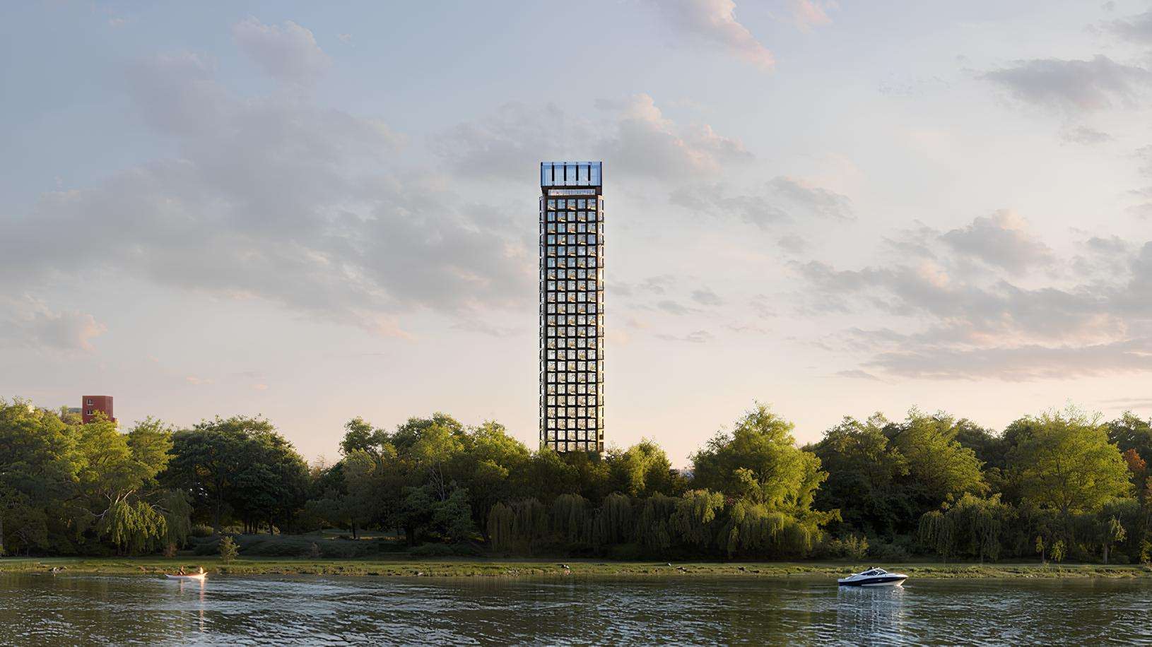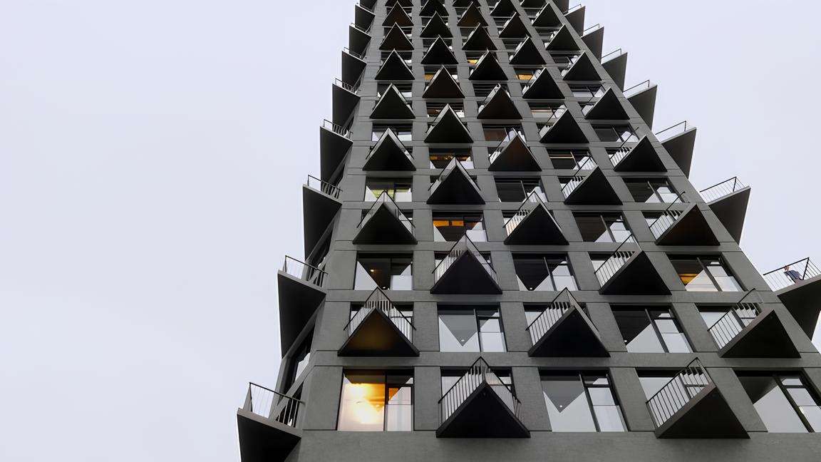 Архитектурный проект комплекса, созданный бюро Kleinewelt Architekten, представляет собой манифест современной столичной архитектуры, напоминающий маяк на берегу. Здание выполнено в современном стиле с элегантным и эффектным фасадом, который формирует его узнаваемый силуэт.
