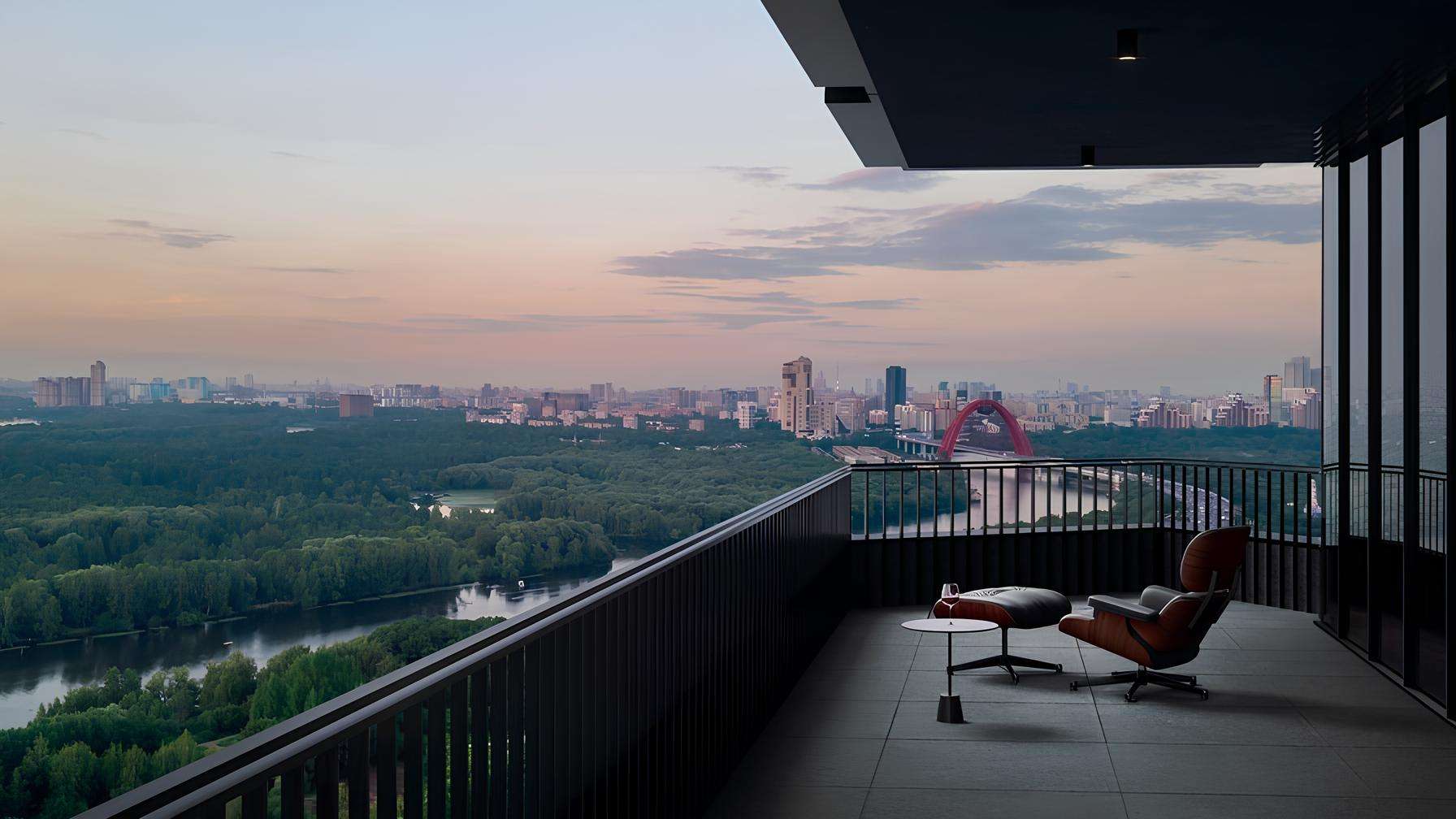 На верхних этажах расположены семь пентхаусов, часть из которых имеет просторные террасы с панорамным обзором. Территория комплекса благоустроена и включает приватный ландшафтный сад и закрытый от посторонних внутренний двор для отдыха резидентов. Рядом находятся такие достопримечательности, как Живописный мост и набережная Москвы-реки, открывающие захватывающие виды прямо из окон.