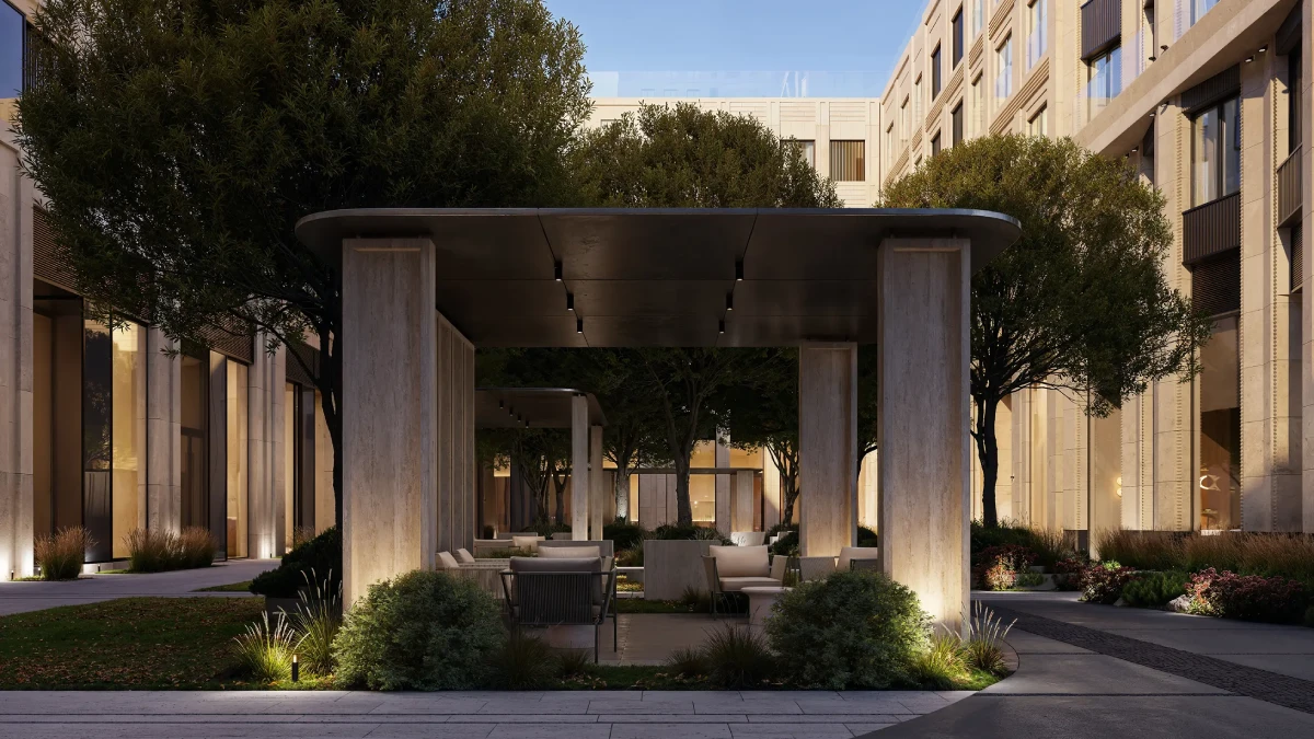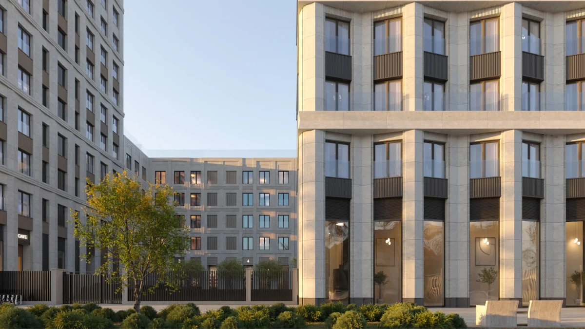 Низкоэтажные корпуса спроектированы по старомосковским стандартам: приватность и отсутствие высоких башен вокруг подчёркивают статус и камерность проекта.