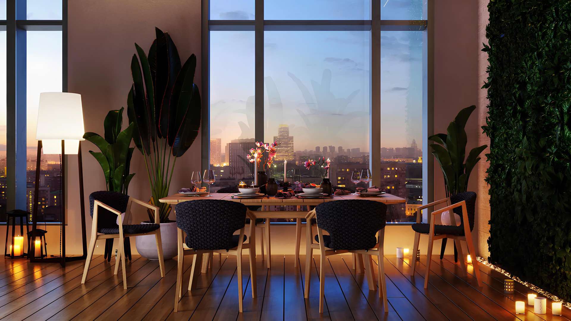 Планировки предусматривают просторные спальни, гардеробные комнаты и возможность организации кабинетов. Во всех квартирах высокие потолки от 3,2 до 3,8 метров и панорамные окна, открывающие виды на исторический центр Москвы. Особого шарма квартирам добавляют террасы площадью до 135 квадратных метров, превращающиеся в летом продолжение гостиной.