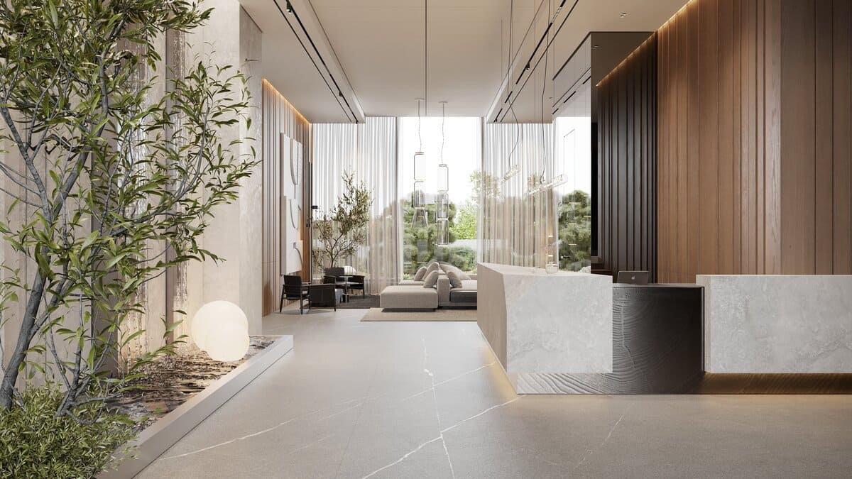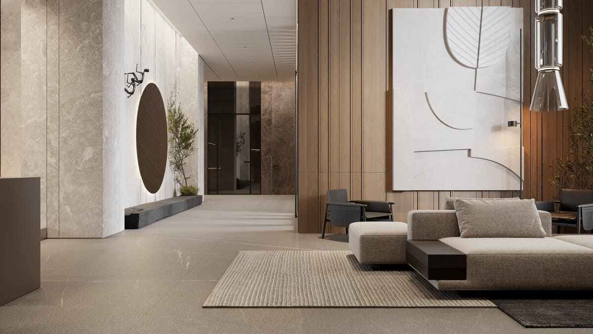 Гостей и жителей встречает зона ресепшен с консьержем, уютная lounge-зона, мини-коворкинг, а также функциональные помещения: почтовая и колясочная, санузел.