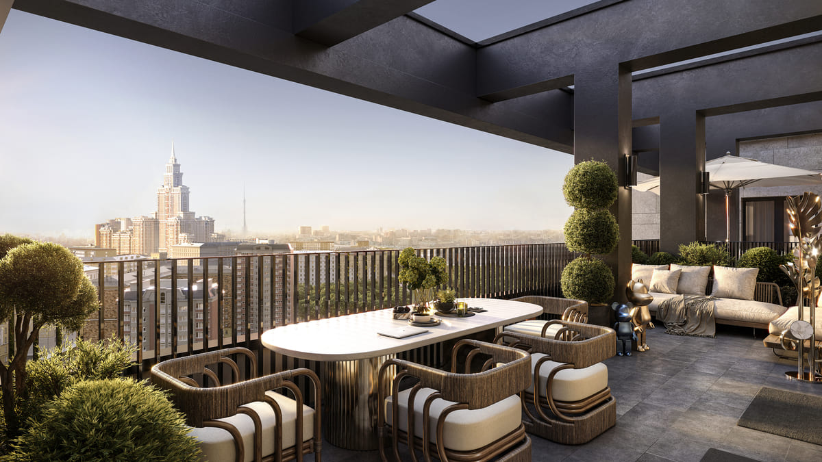 В комплексе представлены как классические планировки, так и уникальные решения с мастер-спальнями, гардеробными, лоджиями и открытыми террасами.