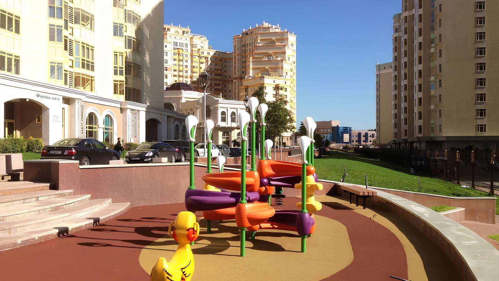 Придомовая территория «Доминиона» — это целый мир для отдыха и активности, спрятанный от городской суеты за периметром охраны.