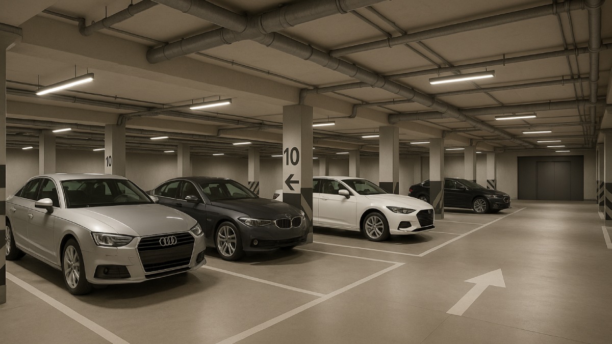Для удобства жителей предусмотрен подземный паркинг, обеспечивающий приватность и сохранность автомобилей.